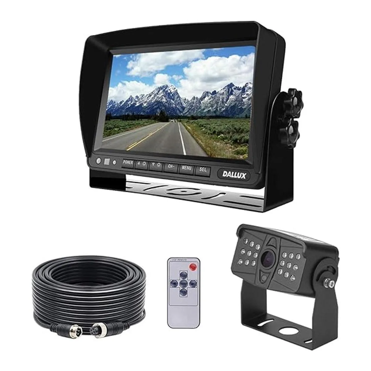 DALLUX Kit de cámara de reserva para camiones, HD 1080P, cámara de cabina con monitor de 7 pulgadas cable de extensión de 4 pines para autobuses, camiones, furgonetas, remolques, caravanas, caravanas, autocaravanas, autocaravanas, camionetas, cosechas, vehículos pesados 12 V24 V