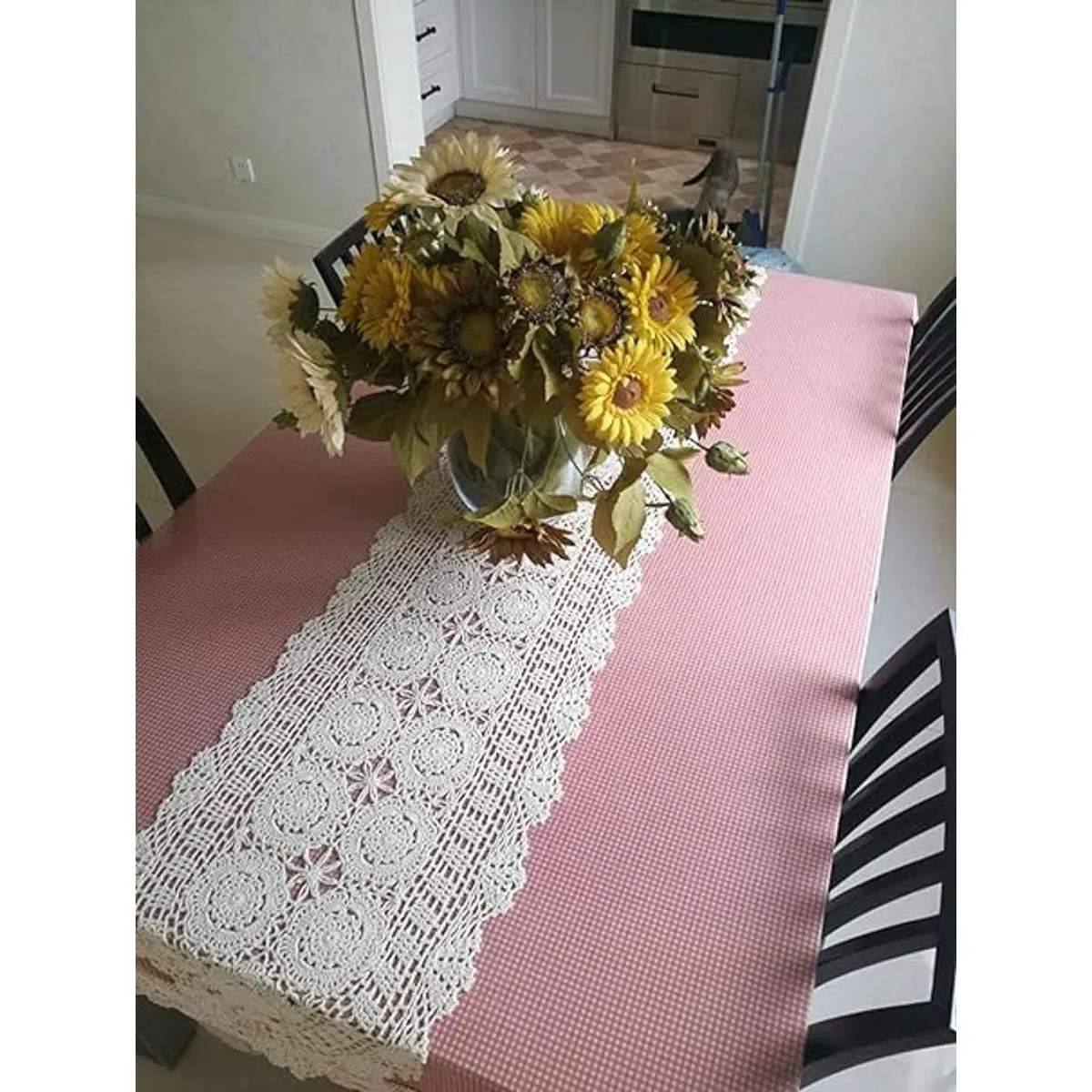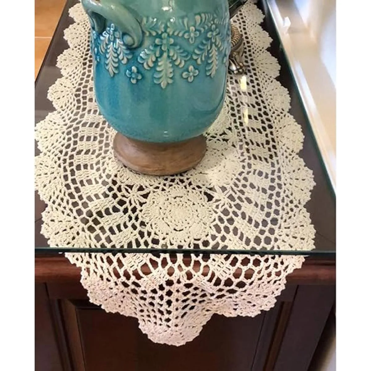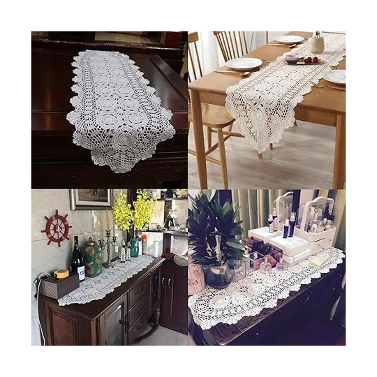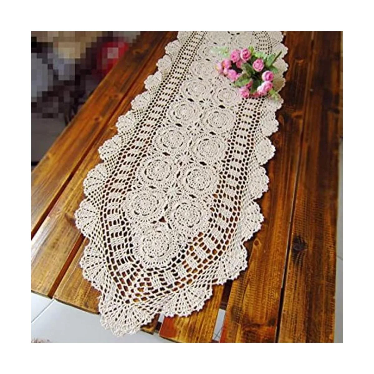Damanni Pañuelo ovalado de algodón hecho a mano con encaje de ganchillo, bufanda de tocador, 15 x 63 pulgadas, beige
