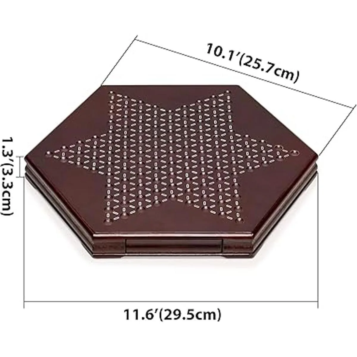 Calidad de juego incluye enfrentado colores de madera, tablero de juego con acabado Cherry Colored y 6 diferente juegos de canicas. las medidas de tablero de juego en l: 11.8 x W: 10.2 x H: 1.1 30 cm x 26 cm x 26 cm x 2,8 cm.