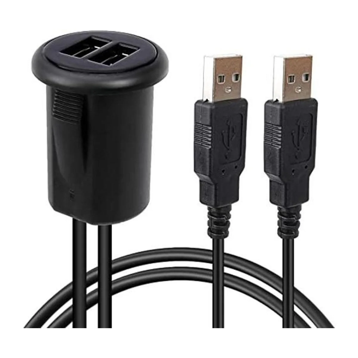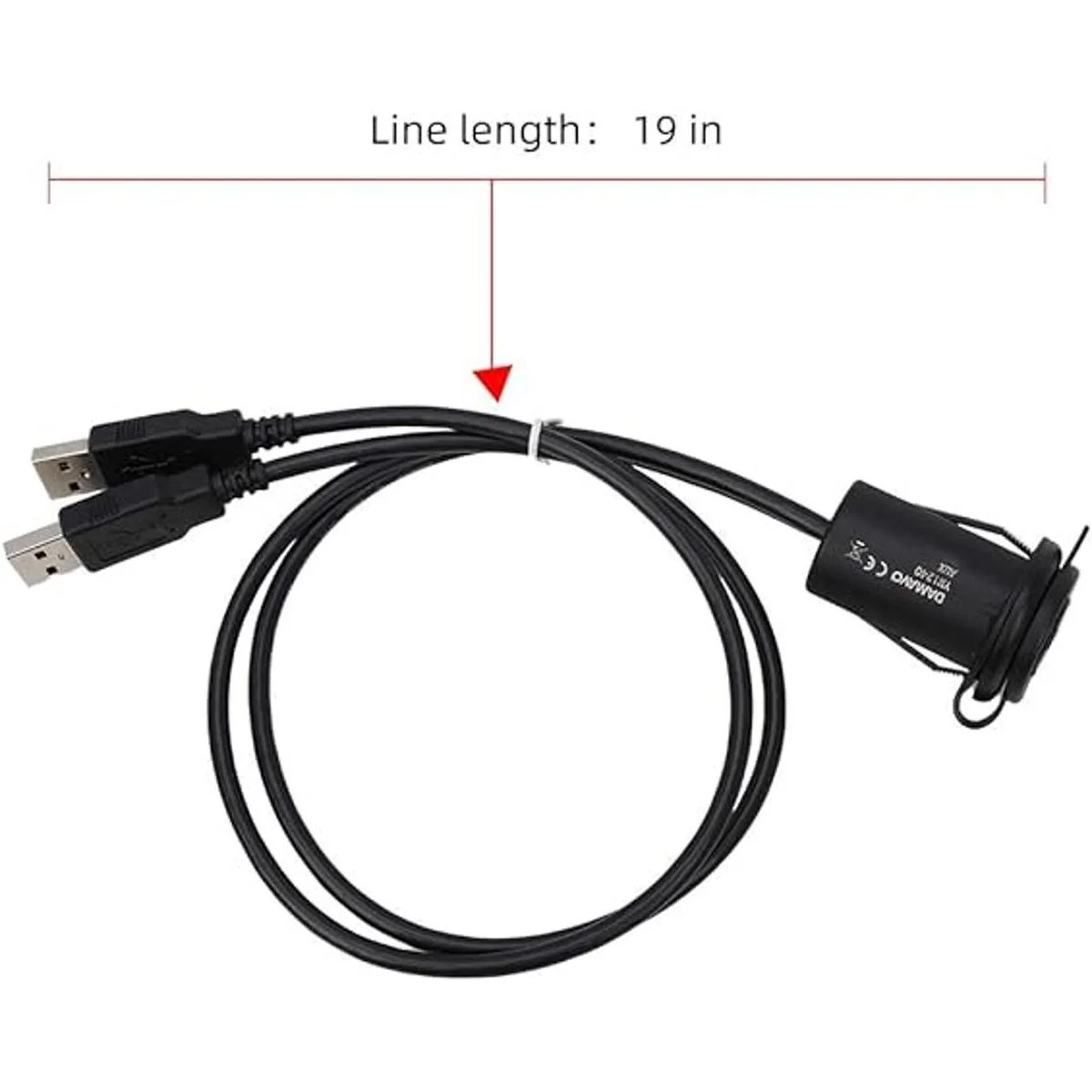 DAMAVO YM1240 Cable de extensión de montaje de coche doble USB 2.0 macho a hembra, con hebilla para coche, camión, barco, panel de salpicadero