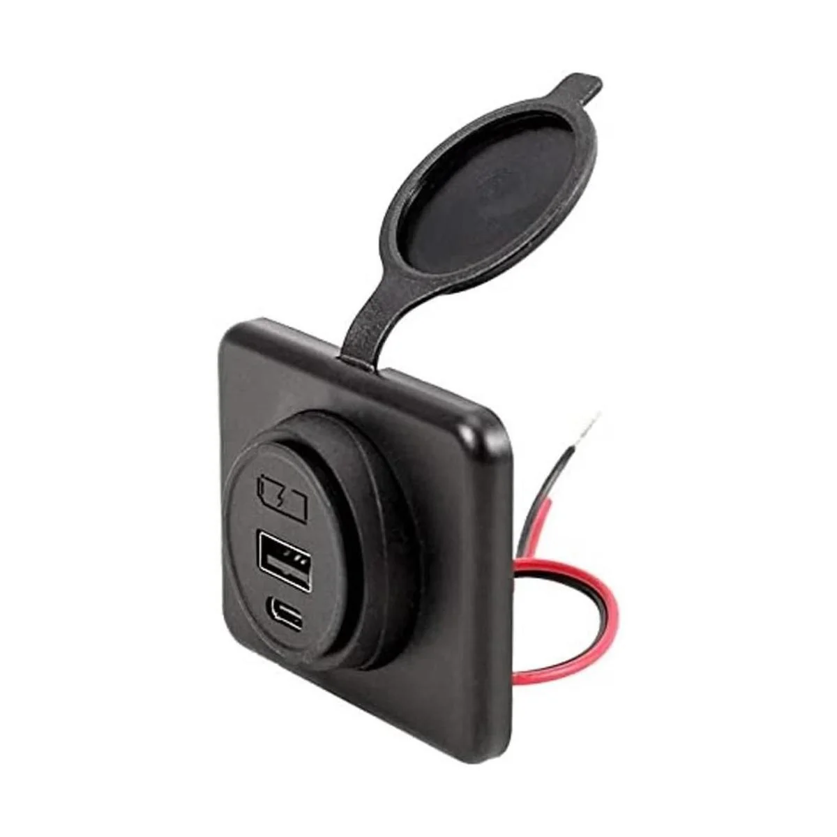 DAMAVO YM1288 Cargador de coche USB tipo C con tapa, cargador rápido de coche de doble puerto de 12 V24 V para automóviles, autobús, RV, barco, automóvil, camión ATV marino y carrito de golf instalación de montaje en superficie