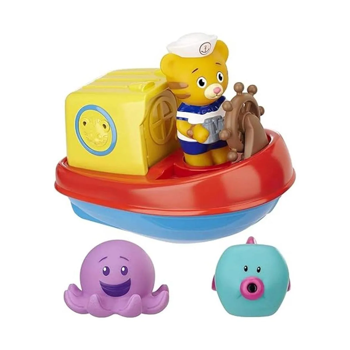 Juego de 6 piezas incluye: Daniel Tiger figura, Fishy, dosificador flotante pulpo y un barco de 3