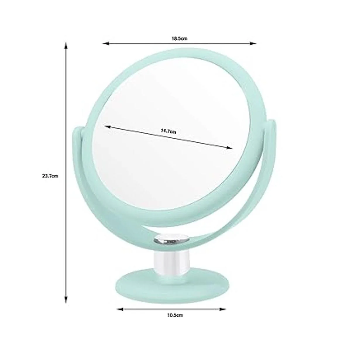 Espejo de tocador redondo con imagen real en un lado y aumento de 10X en el otro