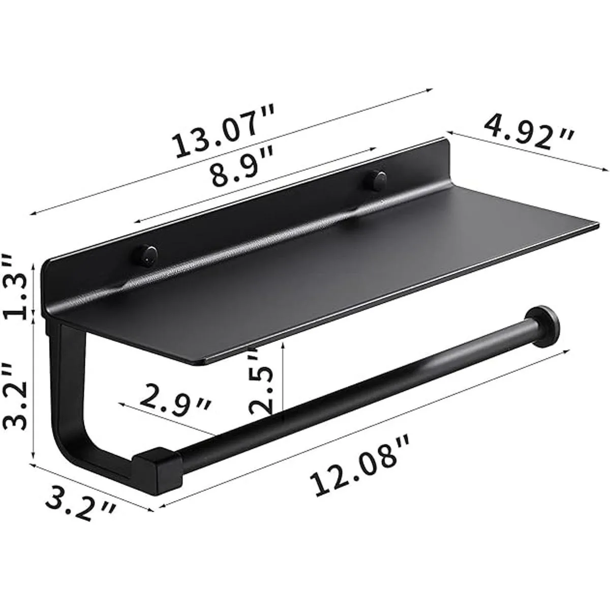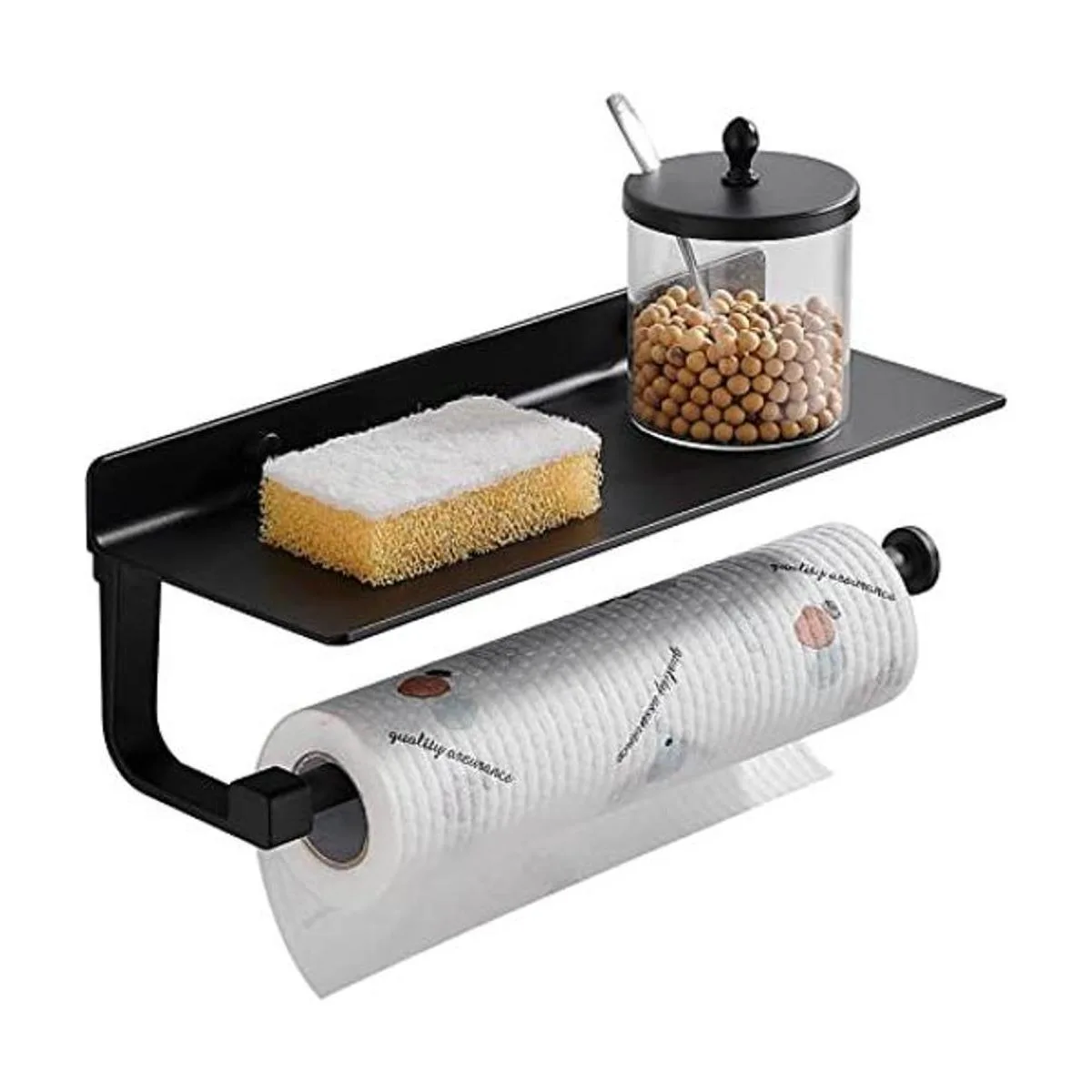 Danpoo Black Paper Towel Holder Wall Mount for Kitchen, Bathroom Paper Towel Holder with Shelf, AluminumMatte Black
