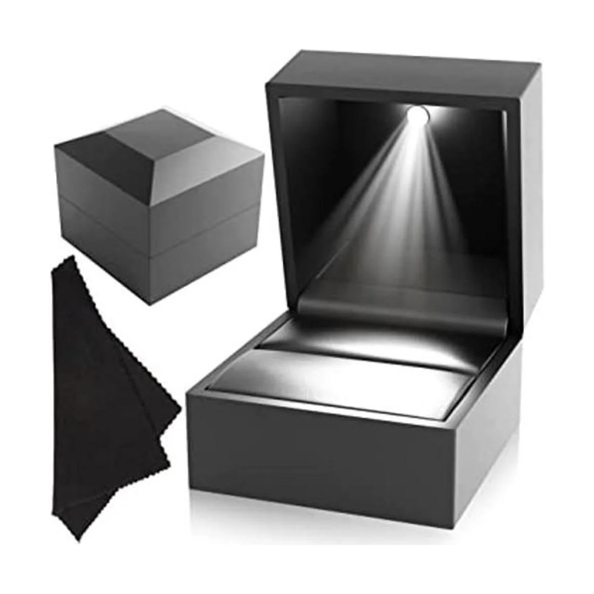 Luz LED romántica: esta caja de anillo cuenta con un diseño único con luz LED automática que se enciende con cada apertura de tapa, creando un ambiente romántico que la impresionará y sorprenderá Con 10 horas de trabajo continuas, puedes estar seguro de que tu caja de anillo añade un toque encantador a cualquier noche.
