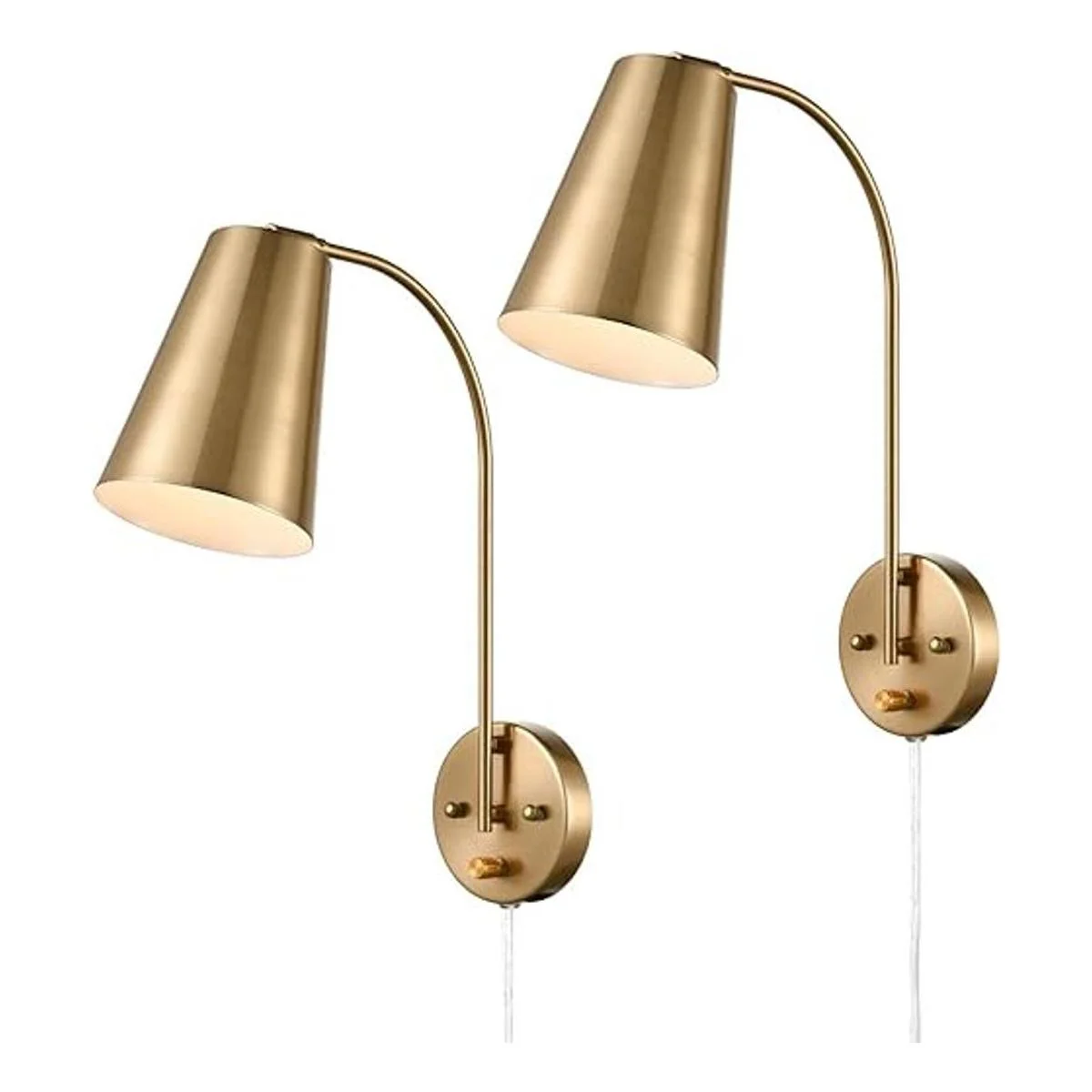 DANXU Juego de 2 apliques de pared modernos enchufables con cable de pared dorados