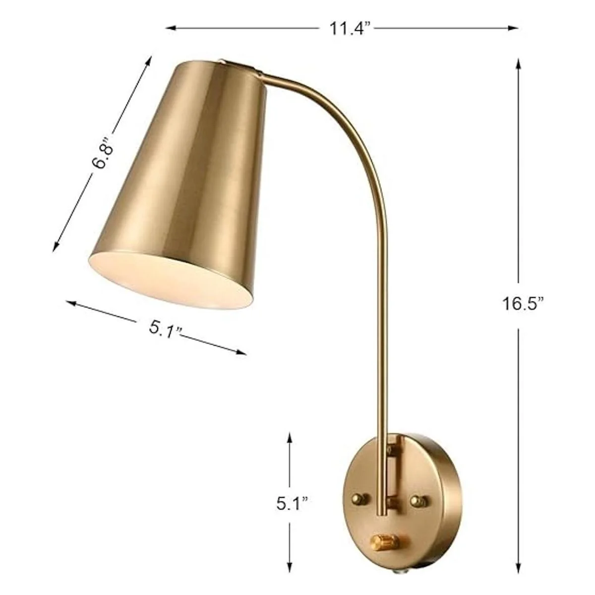 Acabado dorado sobre construcción de metal e interior blanco. El brazo no gira y la cabeza puede moverse hacia arriba, hacia abajo, izquierda o derecha.
