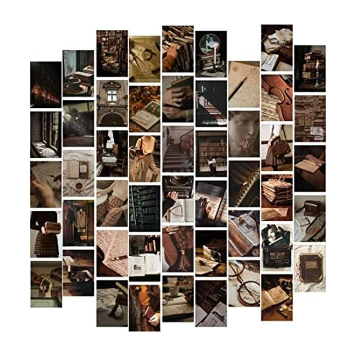 Dark Academia Estética para decoración de habitación, kit de collage de pared de 50 piezas, imágenes estéticas, decoración de habitación de la academia ligera para adolescentes, carteles vintage para habitación de Tiktok, artículos de decoración de habitación de dormitorio