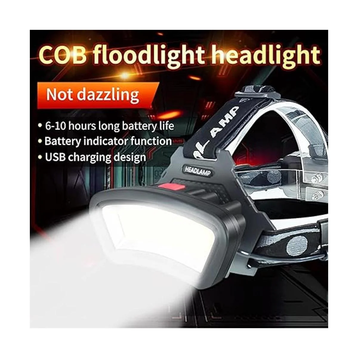 DARKBEAM COB Faro delantero recargable por USB con luz roja, 2000 lúmenes LED Mantenimiento del automóvil y construcción nocturna de 6 a 10 horas de duración de la batería