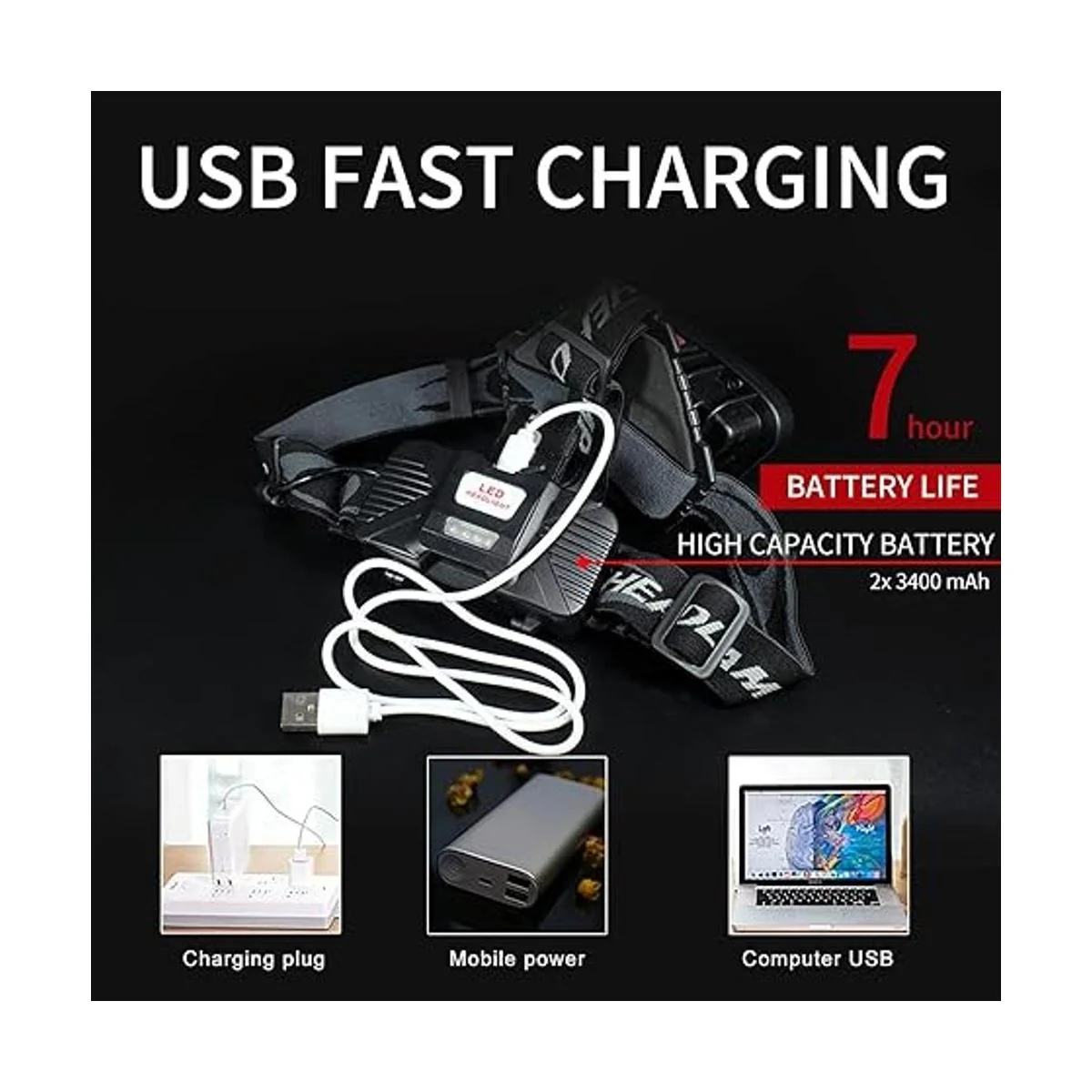 Luz súper brillante y suave y no deslumbrante: se utiliza la fuente de luz COB en forma de arco, la luz es suave y uniforme, y no dañará los ojos mientras se ilumina. Cuatro modos de iluminación: luz blanca fuerte, luz blanca débil, luz roja clara. Diseño recargable por USB: equipado con dos baterías recargables de alta capacidad de 3400 mAh, que se pueden utilizar durante más de 6 horas bajo luz fuerte y más de 10 horas bajo poca luz.
