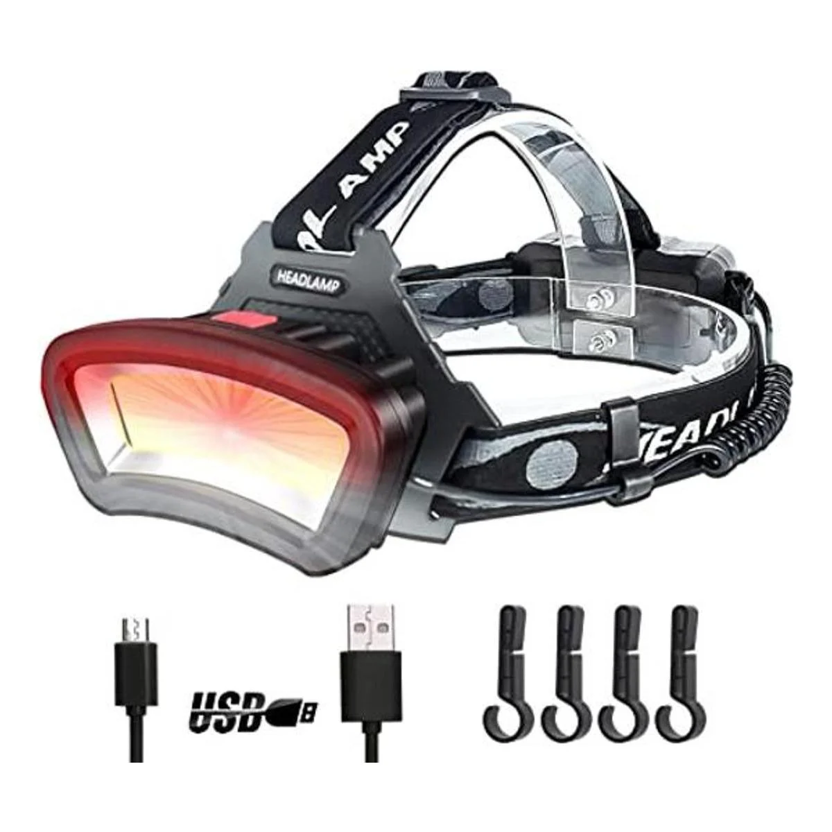 DARKBEAM Faro de casco duro COB LED reflector con luz roja USB recargable de 2000 lúmenes duradero Mantenimiento del coche y construcción nocturna Batería recargable incluida que dura 610 horas