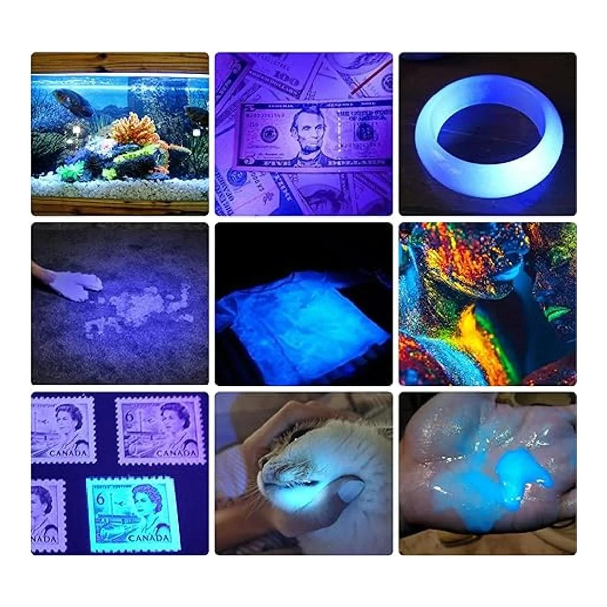 Luz invisible de 365 NM: la luz de 365 nm es invisible a simple vista, por lo que no es tan brillante como la linterna de 395 nm, pero más perfecta para detectar alta demanda como agentes fluorescentes y código de seguridad. Consejos: por favor, limpia tus necesidades antes de realizar el pedido.