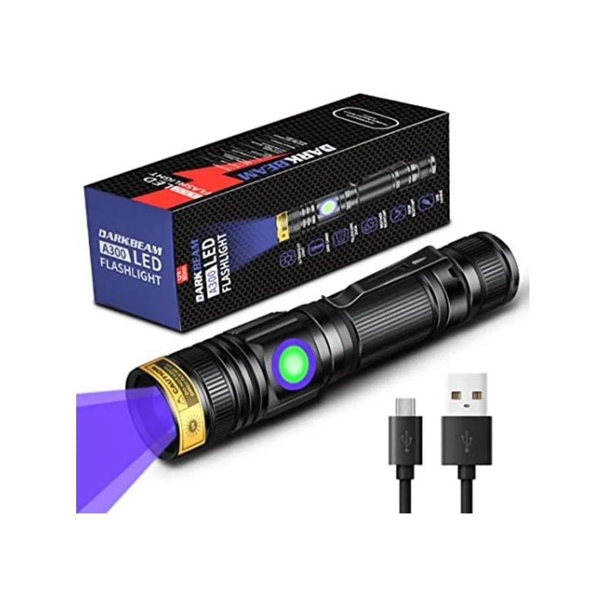 DARKBEAM Linterna UV de 365 nm, luz negra, recargable USB, lámpara de madera, luz negra ultravioleta, LED portátil con clip, detector de orina de mascotas, curado de resina, antifalsificación, detección fluorescente