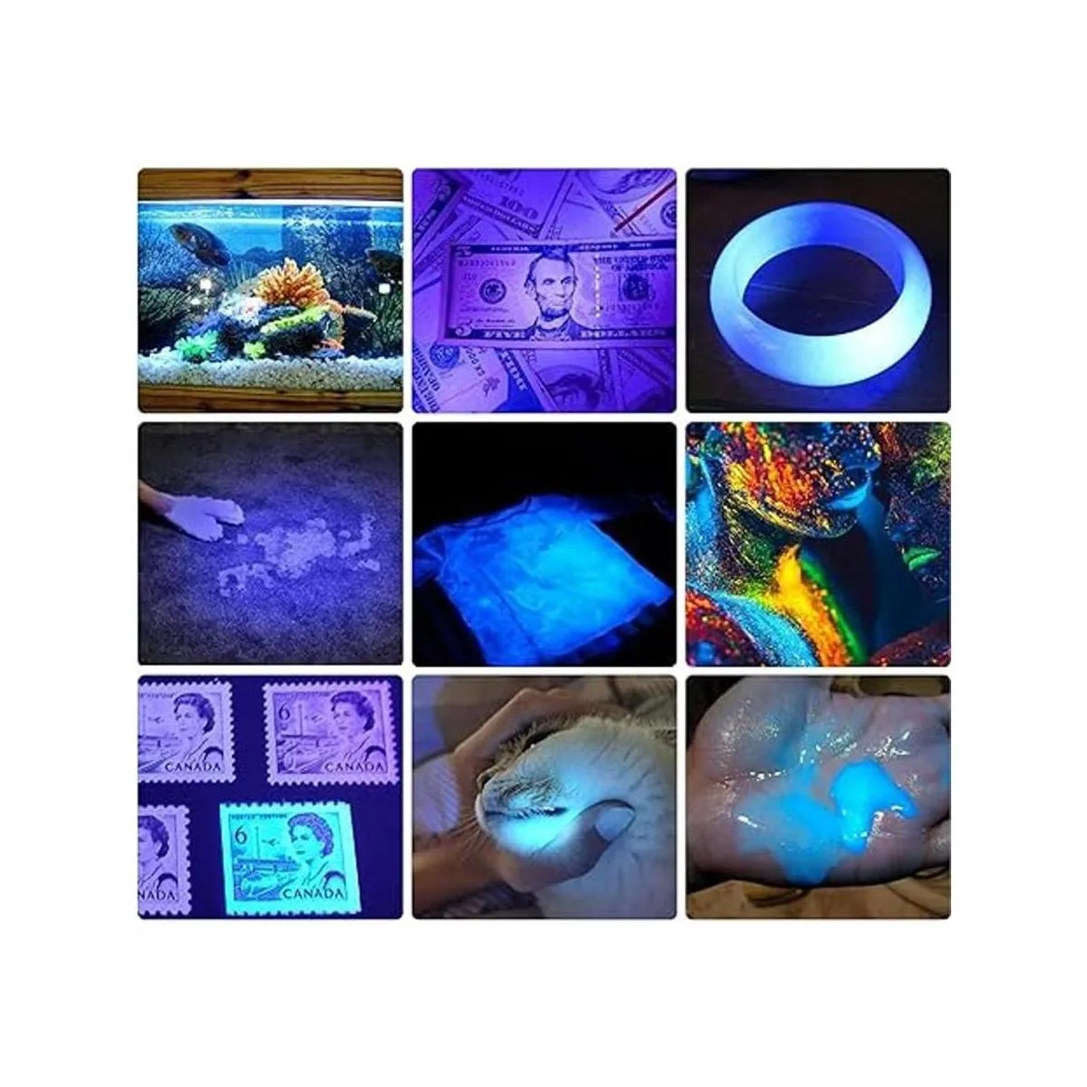 Luz invisible de 365 NM: la luz de 365 nm es invisible a simple vista, por lo que no es tan brillante como la linterna de 395 nm, pero más perfecta para la detección de alta demanda como agentes fluorescentes y código de seguridad. Consejos: Por favor, limpia tus necesidades antes de realizar el pedido. Antes de usar: desenrosca la cubierta trasera y luego enciende la linterna después de cargar completamente la batería.