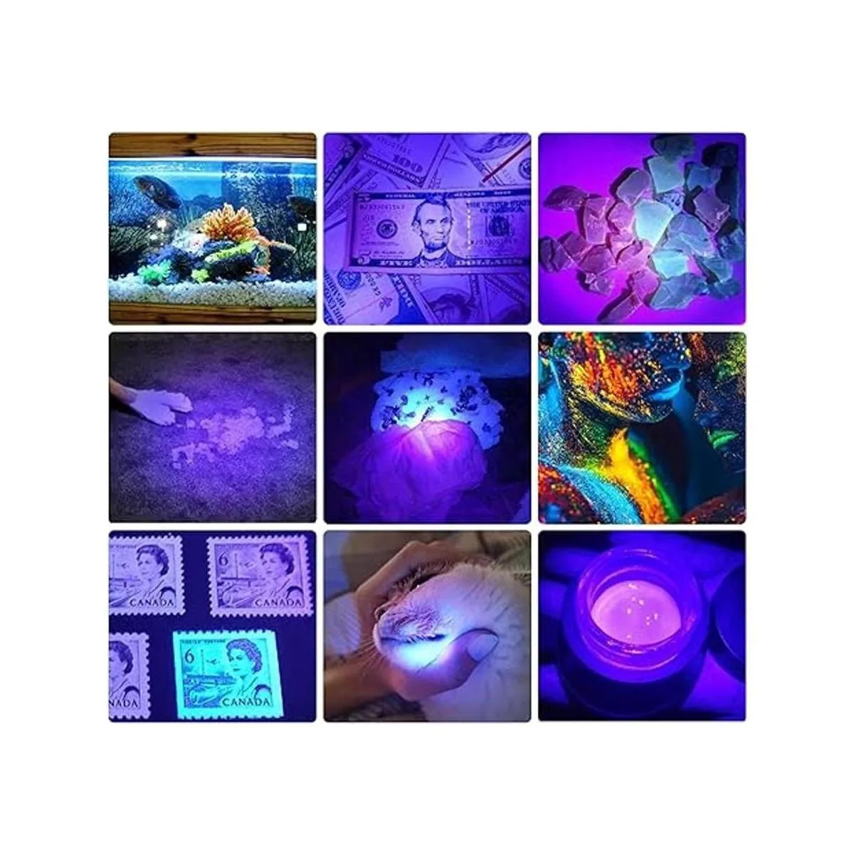 Linterna de luz negra de 395 nm para la eliminación de orina de mascotas, luz UV de longitud de onda de 395 nm / luz negra más fácil detección de manchas secas de orina de mascotas, la linterna ultravioleta también puede comprobar si las facturas y billetes han sido falsificados, y puede ayudar con evaluaciones antiguas.