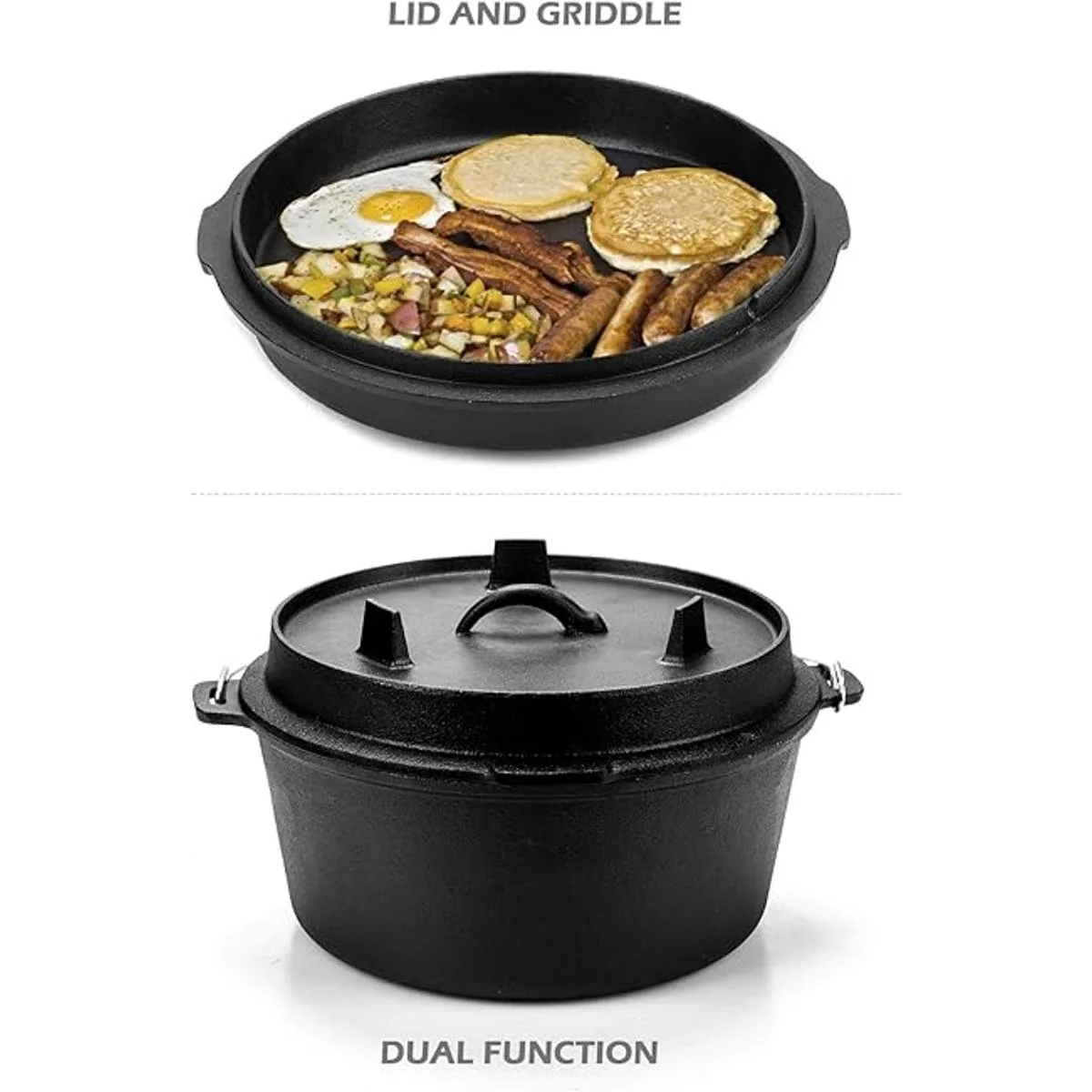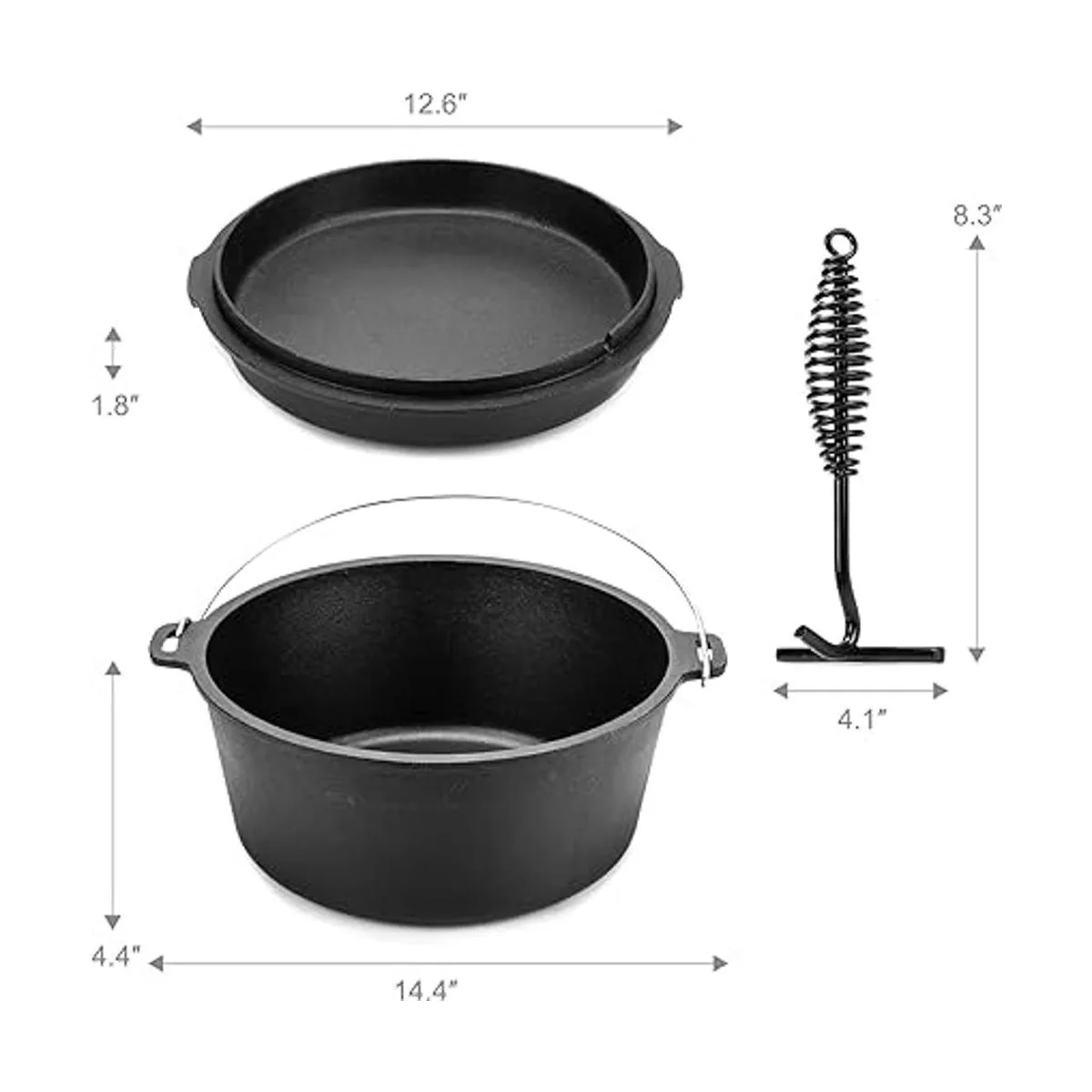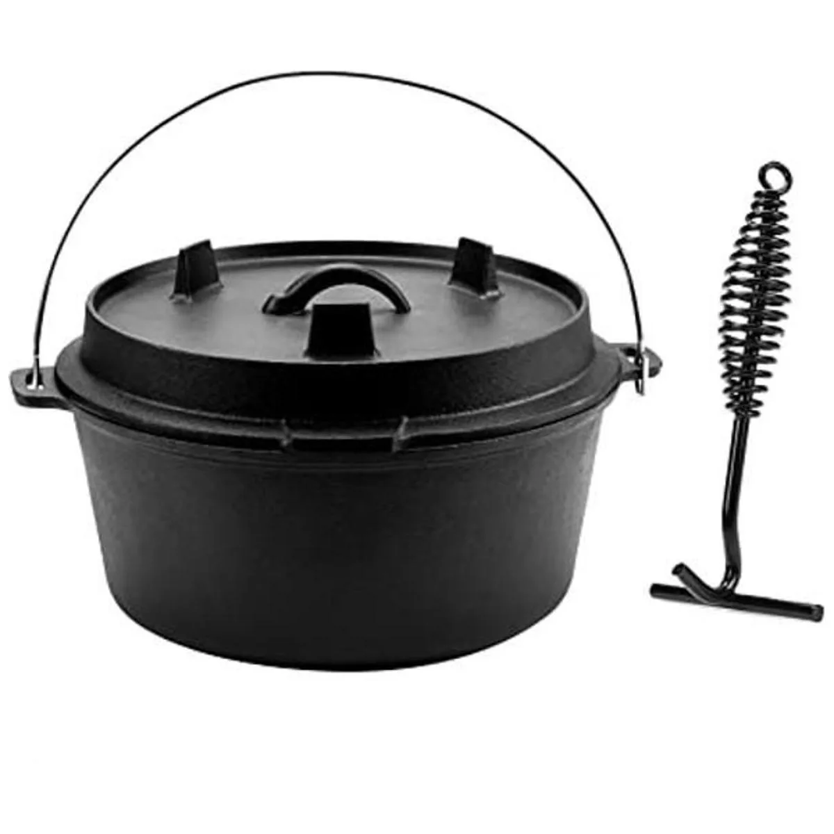 DARTMOOR Horno holandés de hierro fundido presazonado de 9 cuartos con tapa y tapa, herramienta elevadora de tapa, olla de campamento profunda al aire libre para campamento, chimenea, cocina, barbacoa, hornear, fogata, 9 cuartos de galón