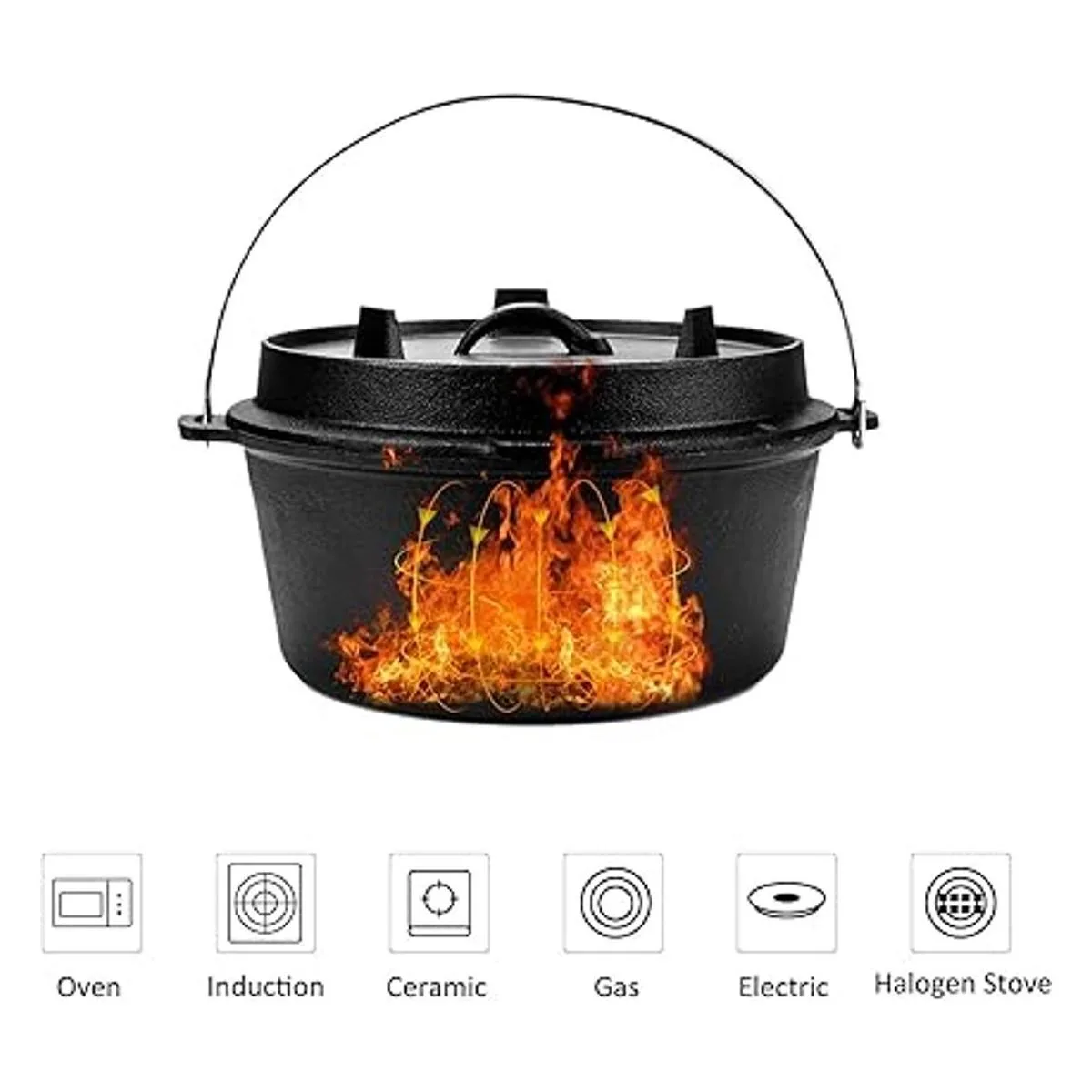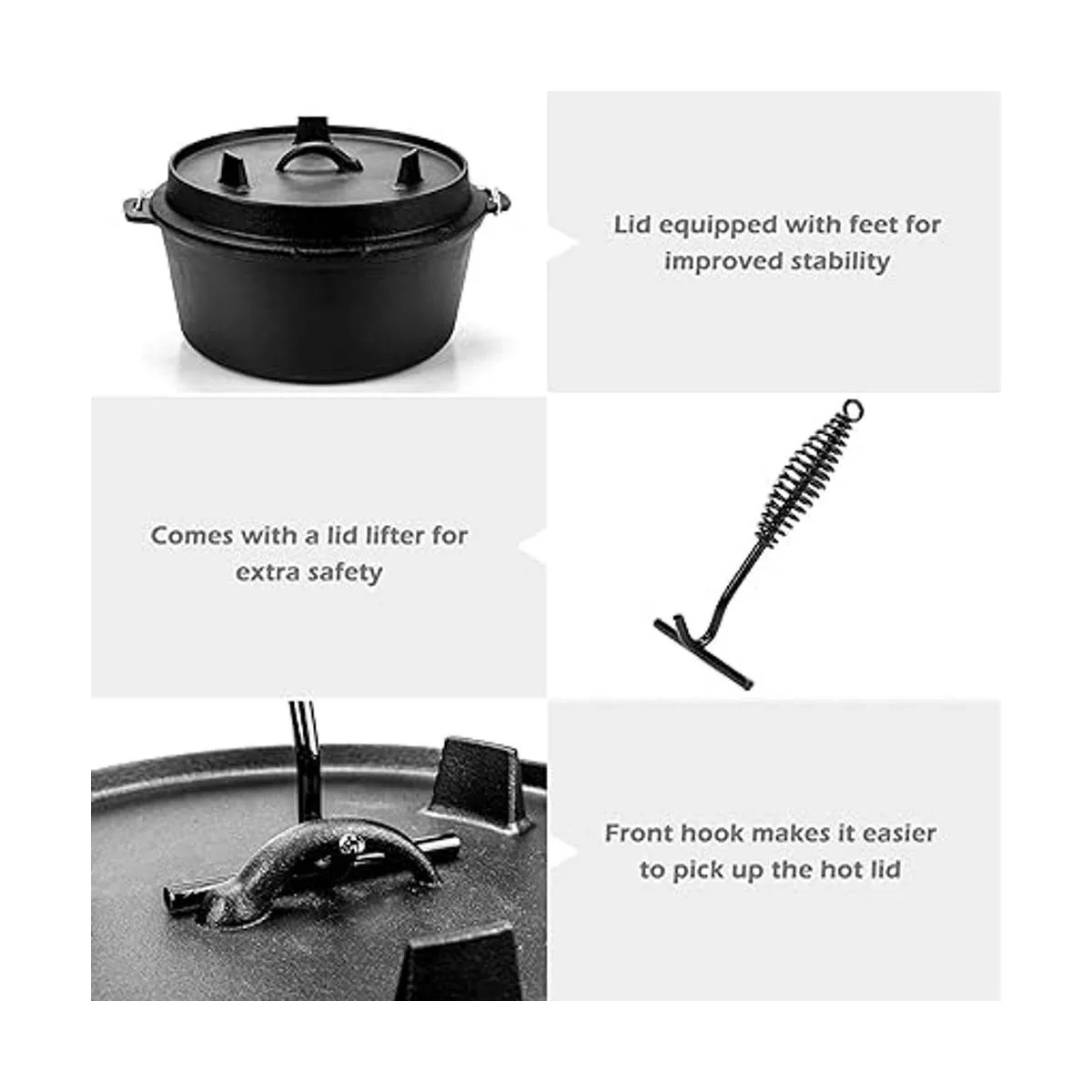 Construcción de hierro fundido en acabado estacionado, fabricado con hierro fundido y procesado con tecnologías de acabado experimentado, este horno holandés de campamento profundo es lo suficientemente resistente como para soportar entornos exteriores extremos