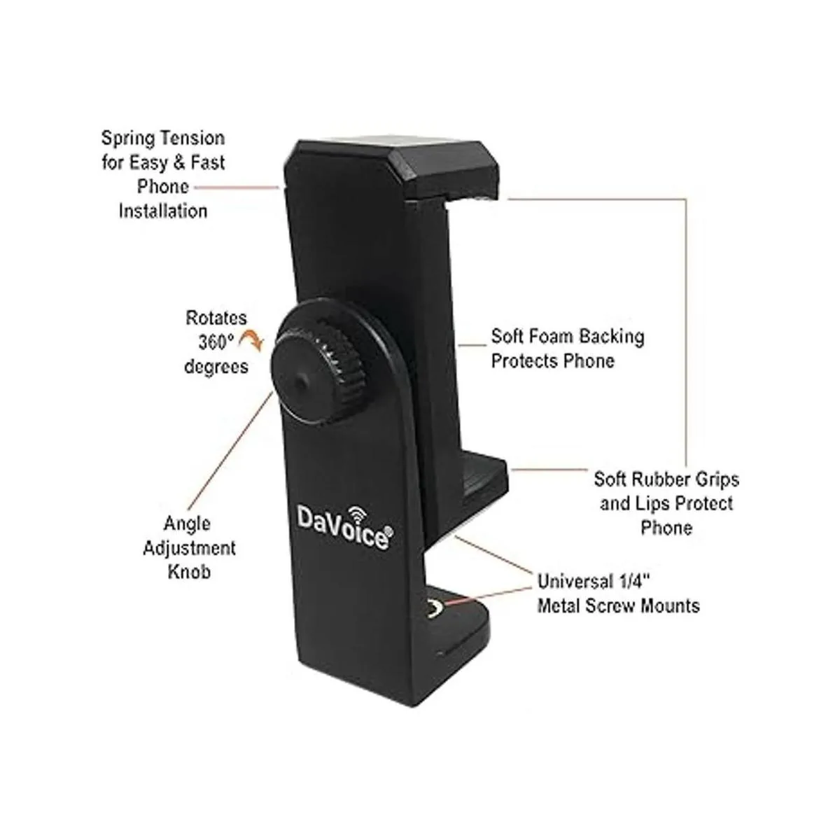 DaVoice Adaptador de trípode para teléfono, soporte giratorio de 360, compatible con soporte de cámara de teléfono inteligente iPhone, abrazadera de clip universal para teléfono celular