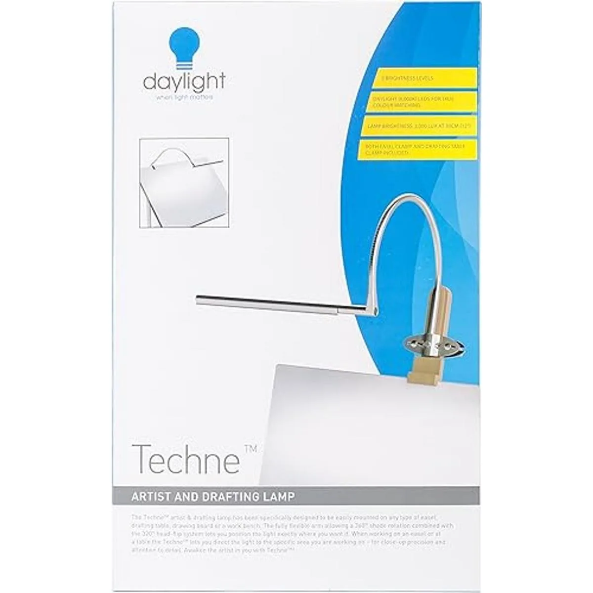 Daylight Techne Lámpara LED para artista y dibujo 4.7 x 7.9 x 2.8 in, acero cepillado