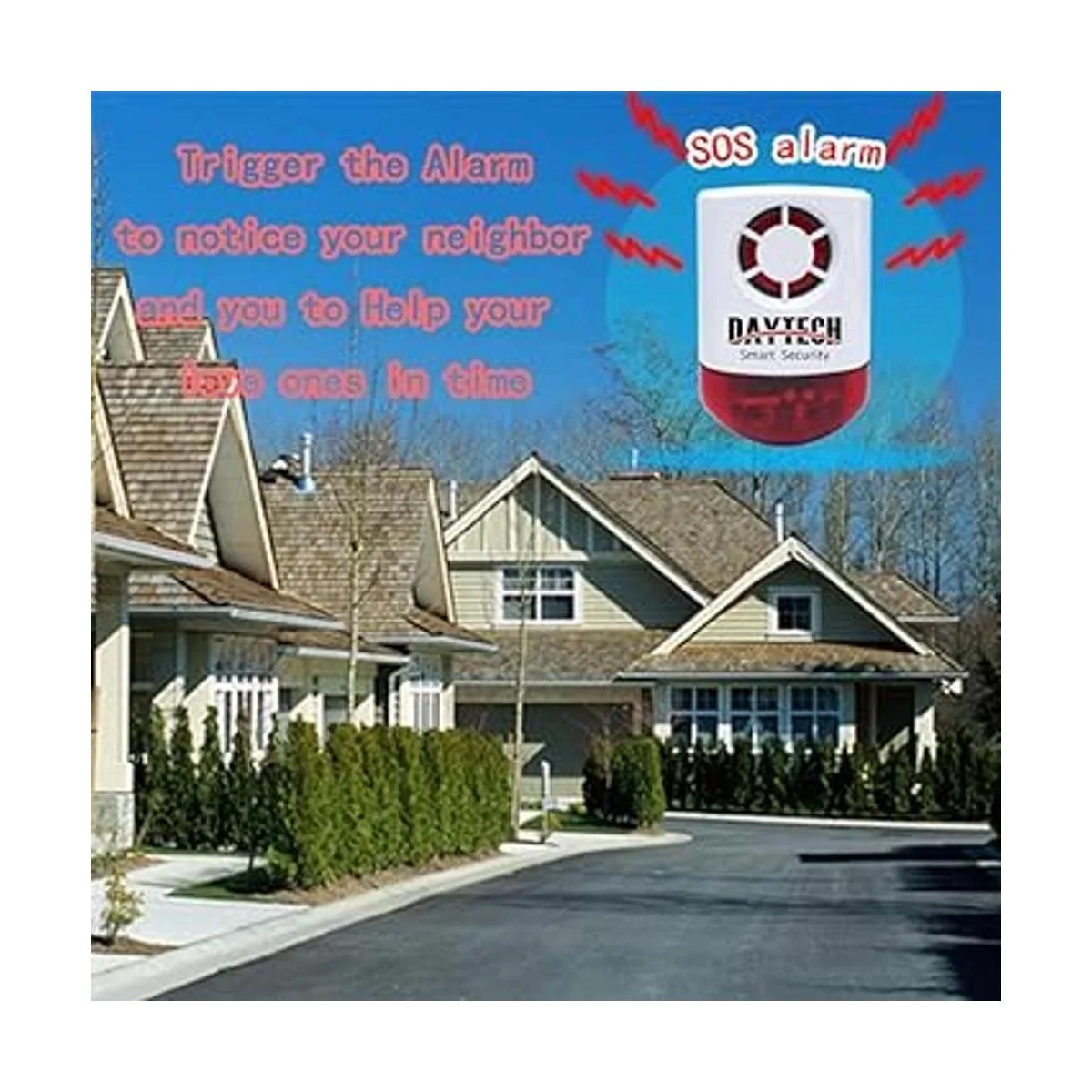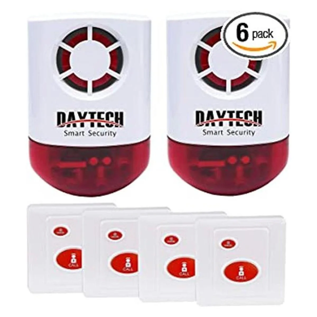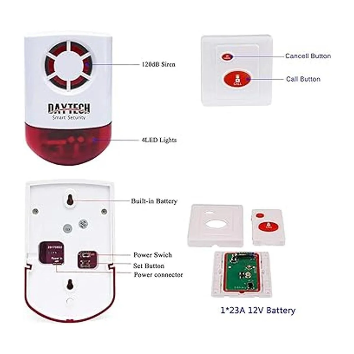 Daytech Sirena estroboscópica con botón de alarma de pánico, alarma de sirena con luz para el cuidado del hogar, sistema de alerta SOS al aire libre, 2 sirenas intermitentes rojas y 4 botones de emergencia para tienda, hotel, joyería, seguridad