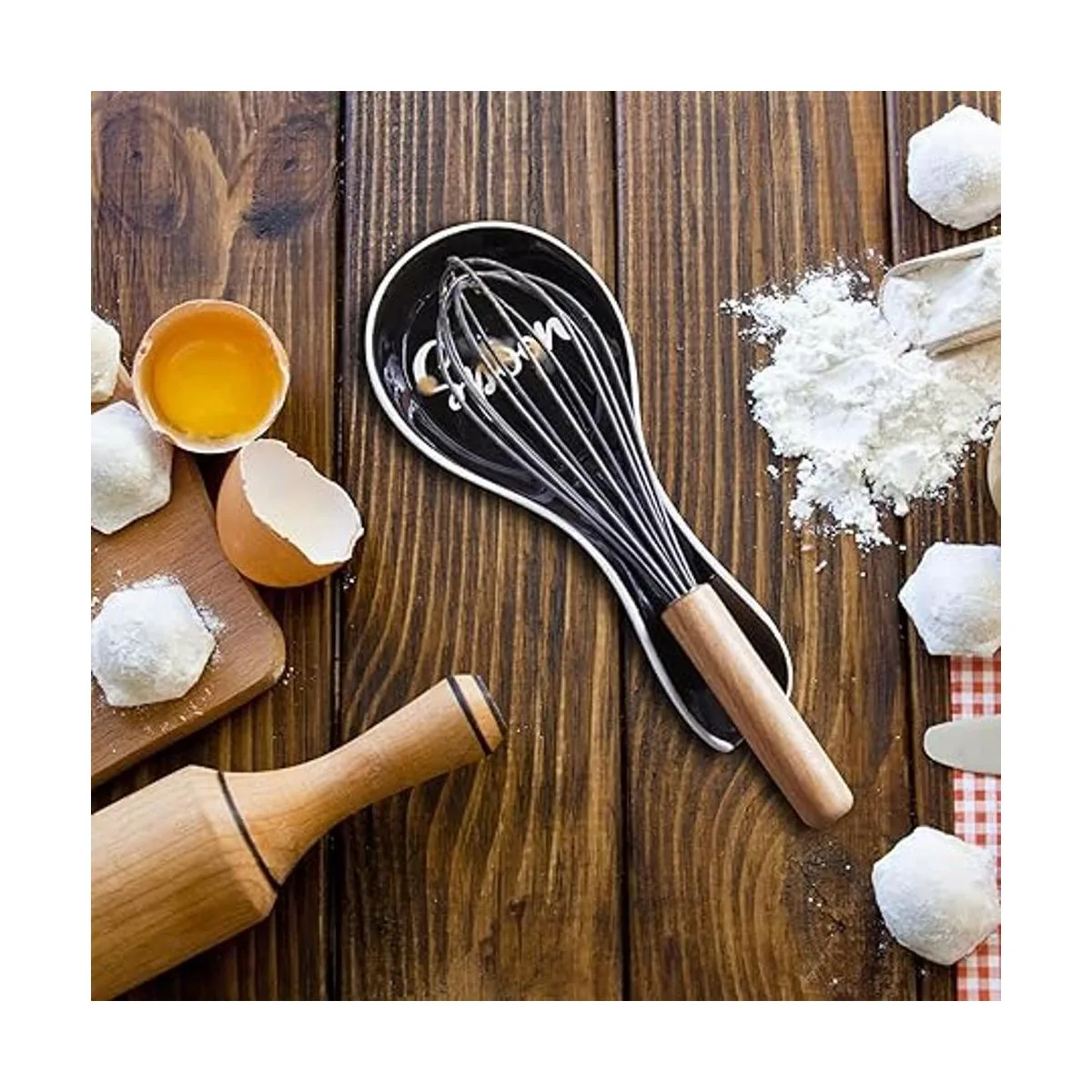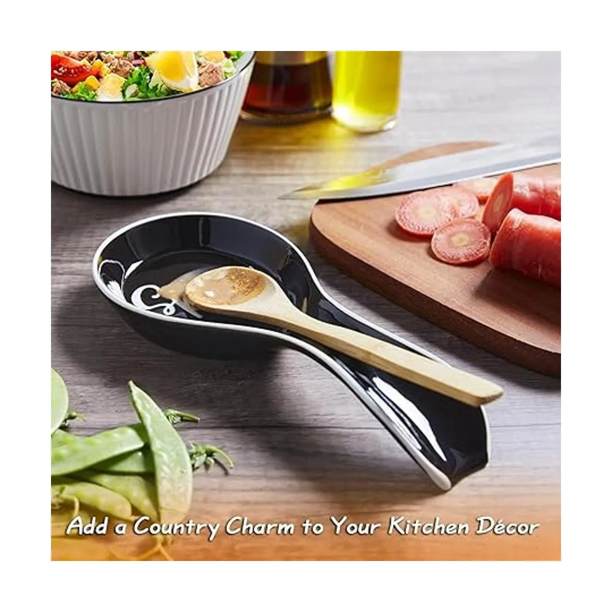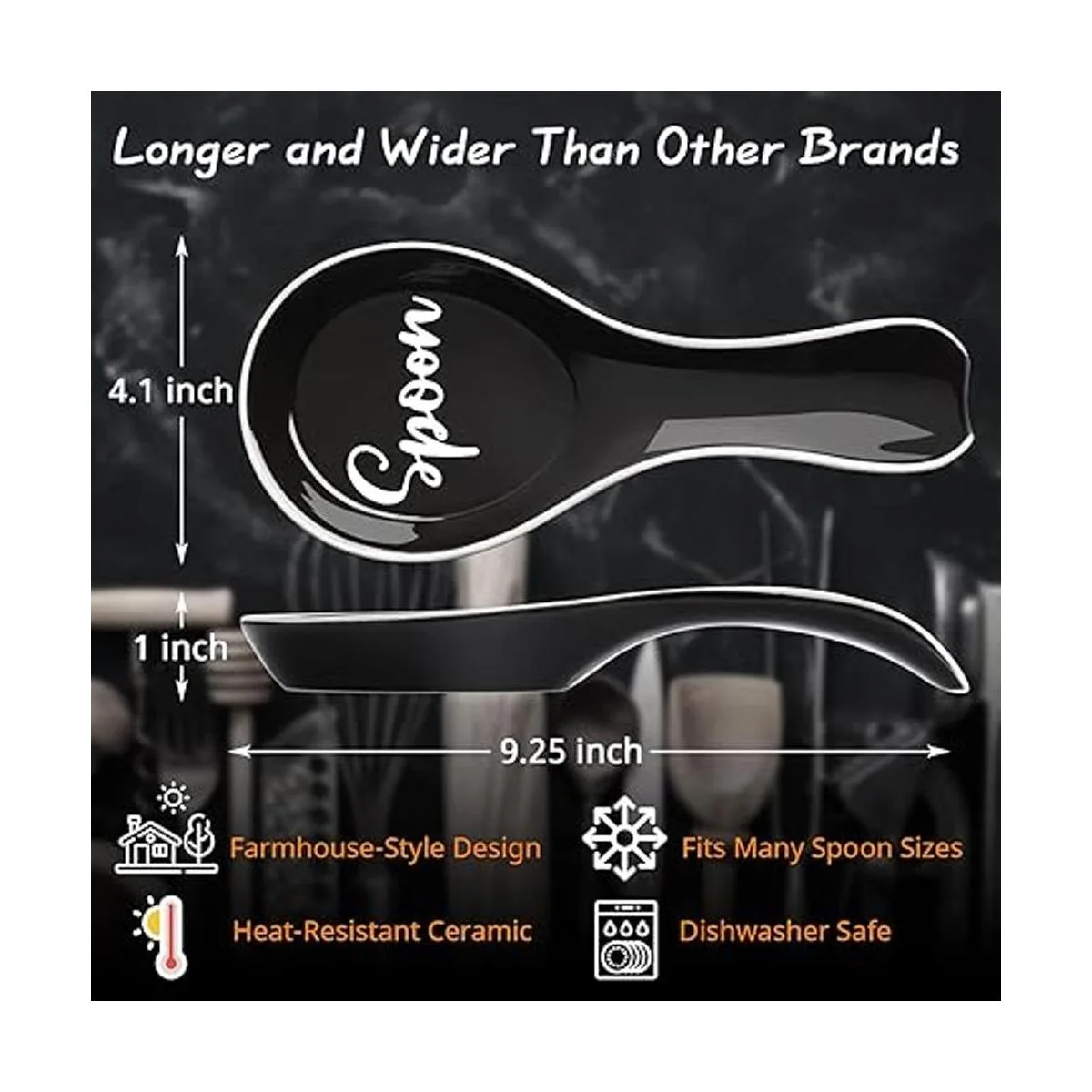 Soporte funcional y decorativo: nuestro soporte de cuchara de cerámica de 9.25 x 4.1 pulgadas es lo suficientemente largo y ancho, que es el tamaño perfecto para adaptarse a cucharas grandes y pequeñas, pinzas, cucharones y batir bien. Este soporte para cucharas de granja para estufa se adapta perfectamente a cualquier decoración moderna de granja y bonitos accesorios de cocina.