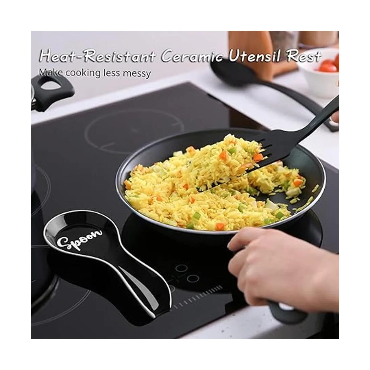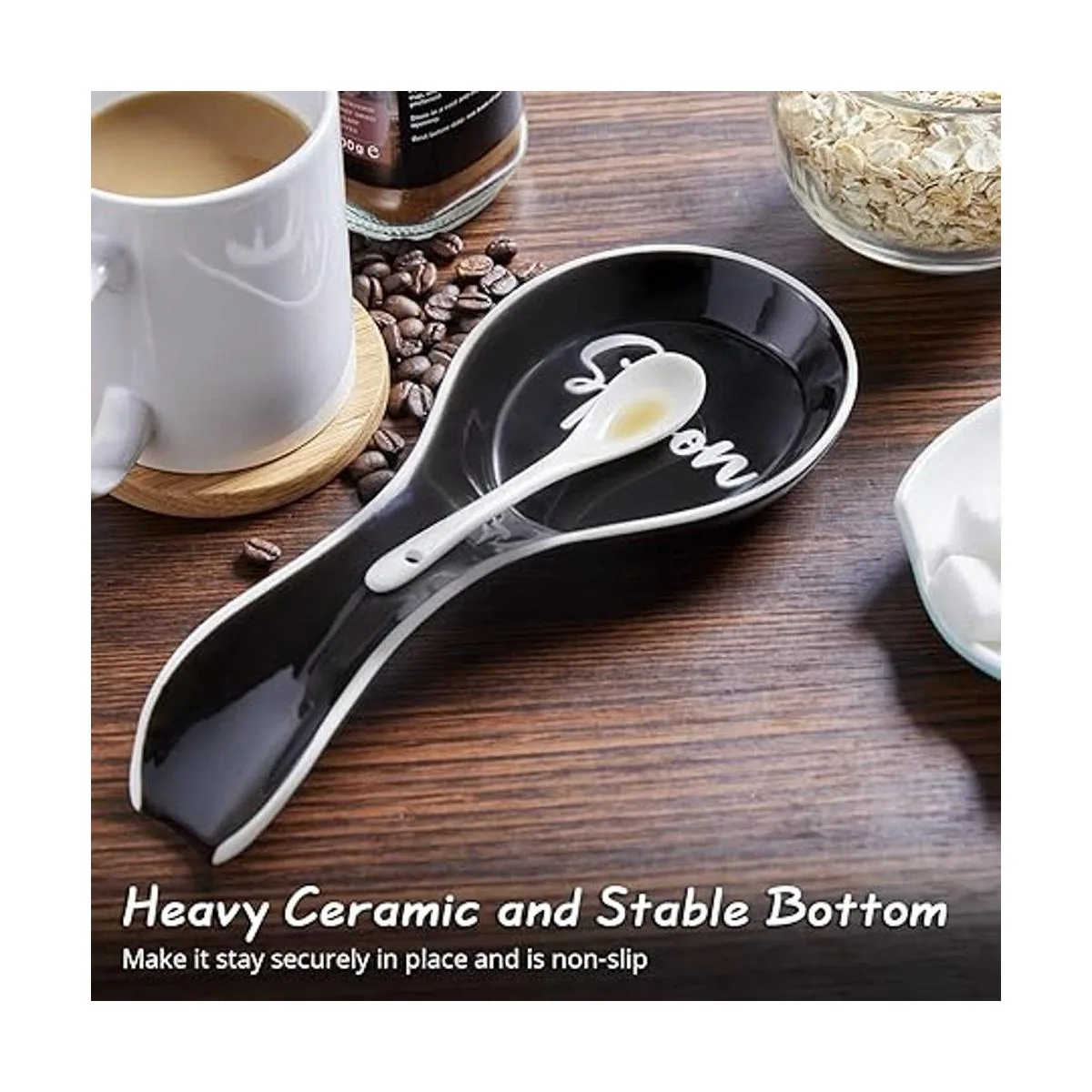 Cerámica resistente al calor y resistente: a diferencia de otros materiales, la cerámica es más segura y nunca raya, se oxida y se derrite. Este soporte para cuchara para encimera de cocina es duradero y agradable y pesado para mantenerlo firmemente en el mostrador. No se moverá al descansar cucharas.