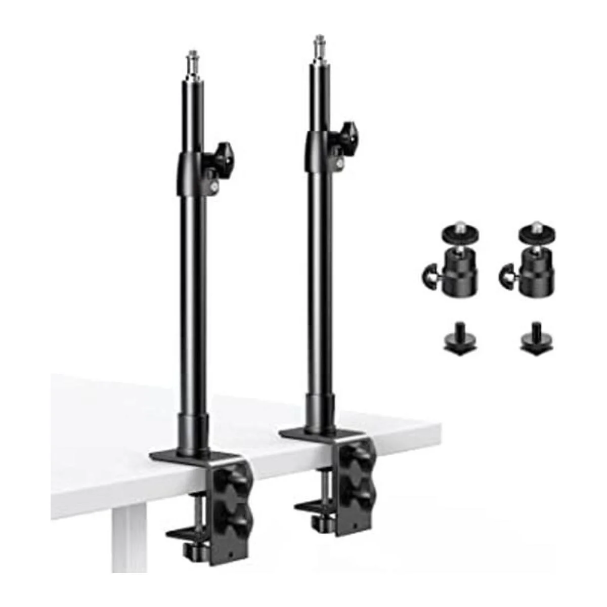 Dazzne Paquete de 2 soportes de escritorio para cámara con cabezal de bola de 14 pulgadas y adaptador de montaje en zapatas frías, soporte de montaje de mesa de 12.9 a 22 pulgadas, soporte de luz de escritorio de aluminio ajustable, para cámara DSLR, luz de anillo, luz de video