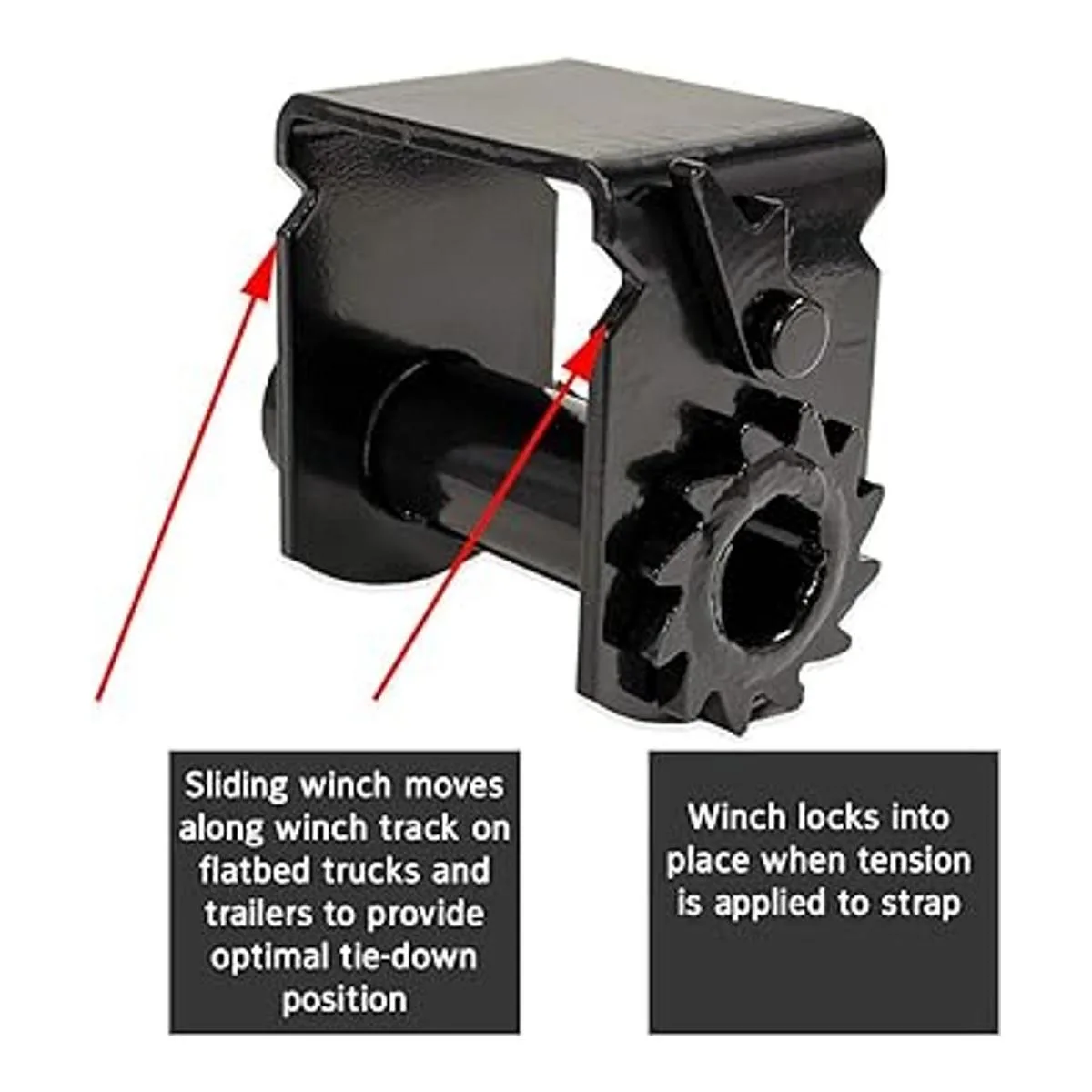 Obtén posiciones de amarre precisas: Por qué la mayoría de los camioneros de plataforma plana prefieren deslizadores sobre cabrestantes soldados Un cabrestante deslizante te permite colocar las correas exactamente donde lo necesites para asegurar tu carga. Desliza el cabrestante en cualquier dirección en la pista del cabrestante hasta que se alinee con tu carga. Aplica tensión a la correa y el cabrestante se bloquea en su lugar.