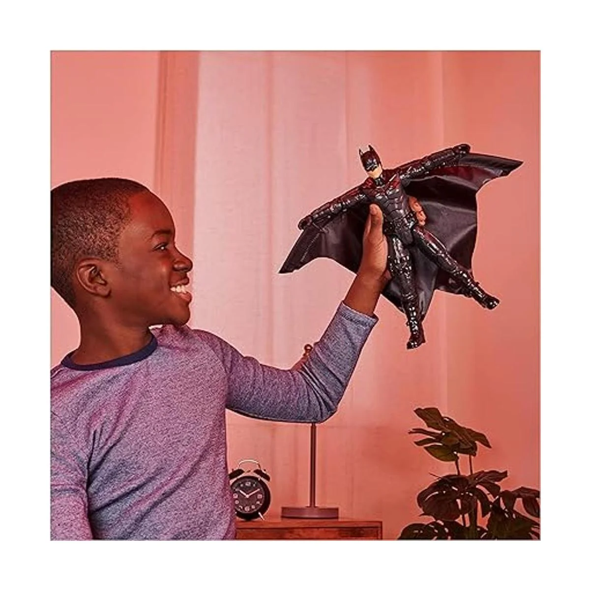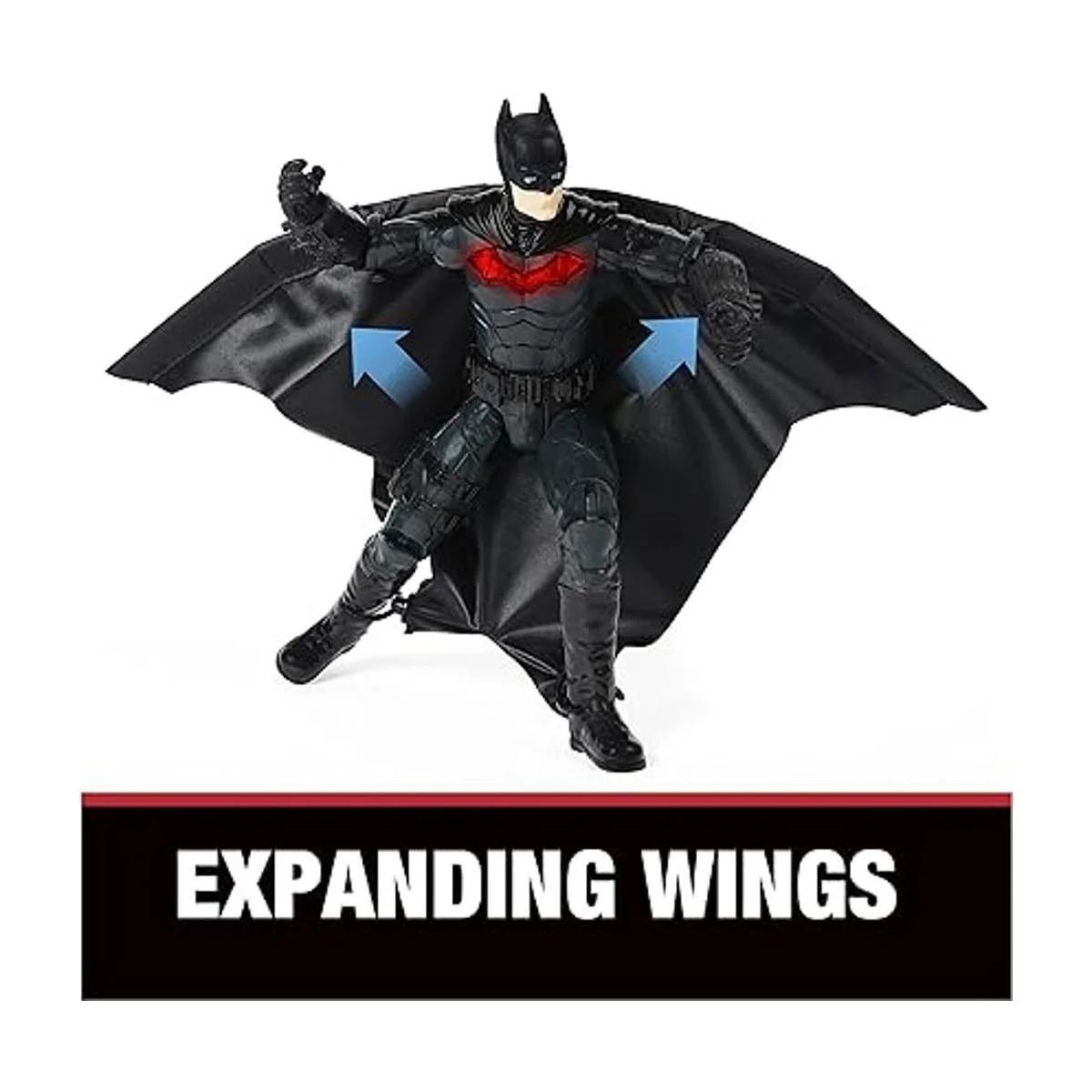 DC Comics, Batman Figura de acción de traje de ala de 12 pulgadas con luces y frases, alas expandibles, juguetes coleccionables de la película Batman para niños y niñas a partir de 3 años