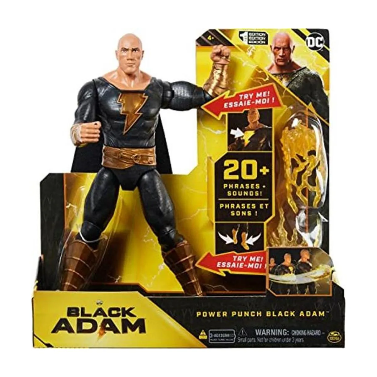 DC Comics, Power Punch Black Adam Figura de acción de 12 pulgadas, más de 20 frases y sonidos, se ilumina con 2 accesorios, película Adam negra, juguetes coleccionables para niños y niñas a partir de 3 años