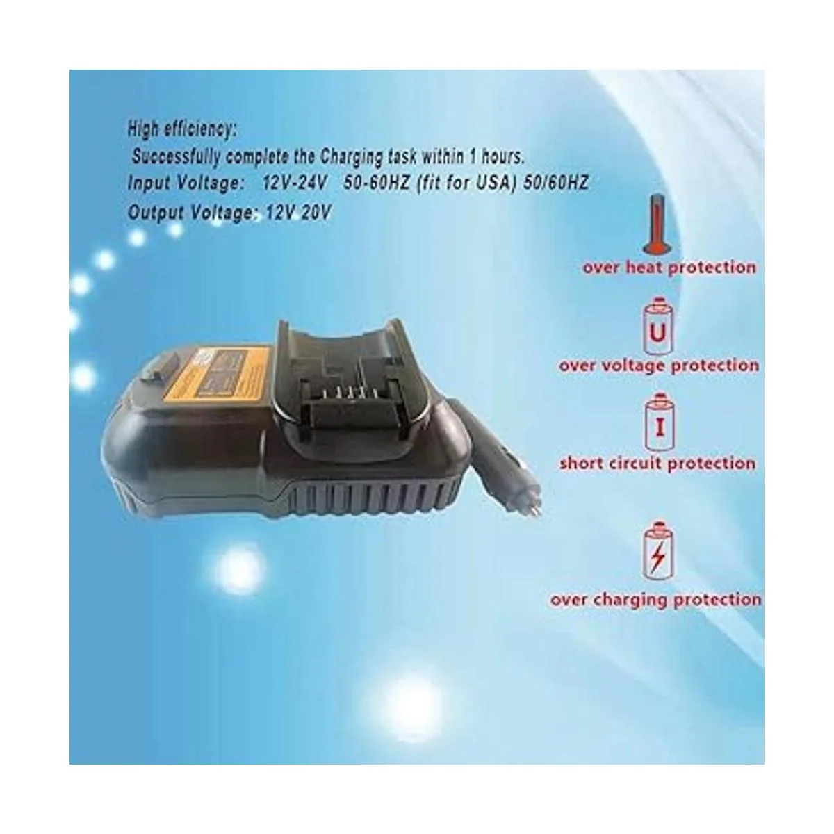 Comodidad: puede cargar todas las baterías y herramientas Dewalt de 12 V y 20 V mientras conduces al trabajo o en un lugar de trabajo
