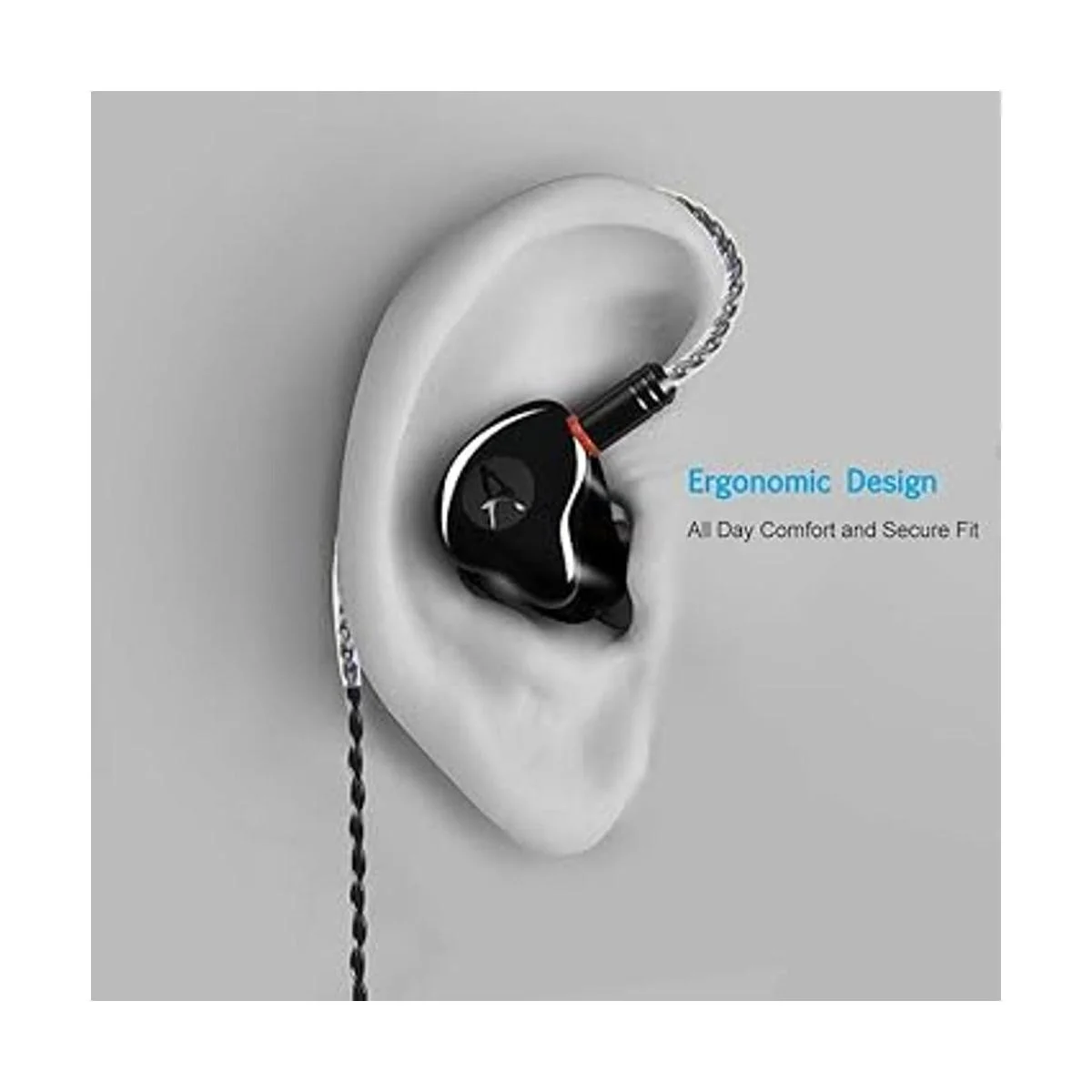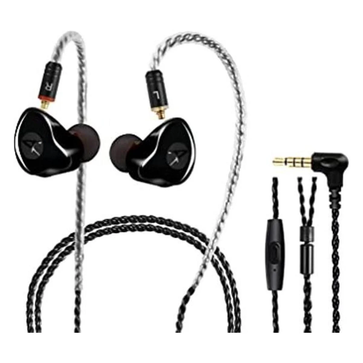 DCMEKA Monitor de oído, auriculares híbridos dinámicos con cable, auriculares intrauditivos de doble conductor, músicos en el oído con cables desmontables MMCX, auriculares con aislamiento de ruido, estéreo de alta fidelidad negro con micrófono