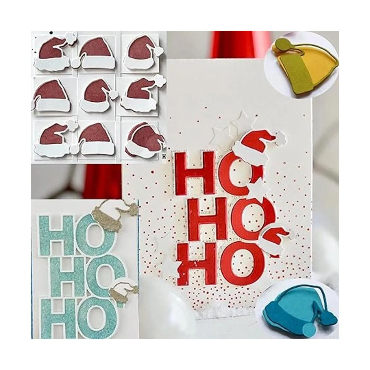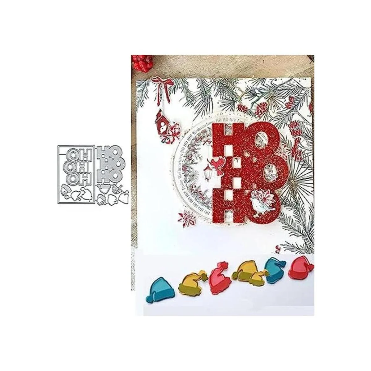 DDeehs Marco de sombrero de Navidad con diseño de letras, troqueles de metal, troqueles de corte de tarjetas de árbol alegre, plantillas cortadas, álbumes de recortes, papel decorativo para hacer festivales, 5.039 x 4.213 in, 5.03 x 4.21 pulgadas