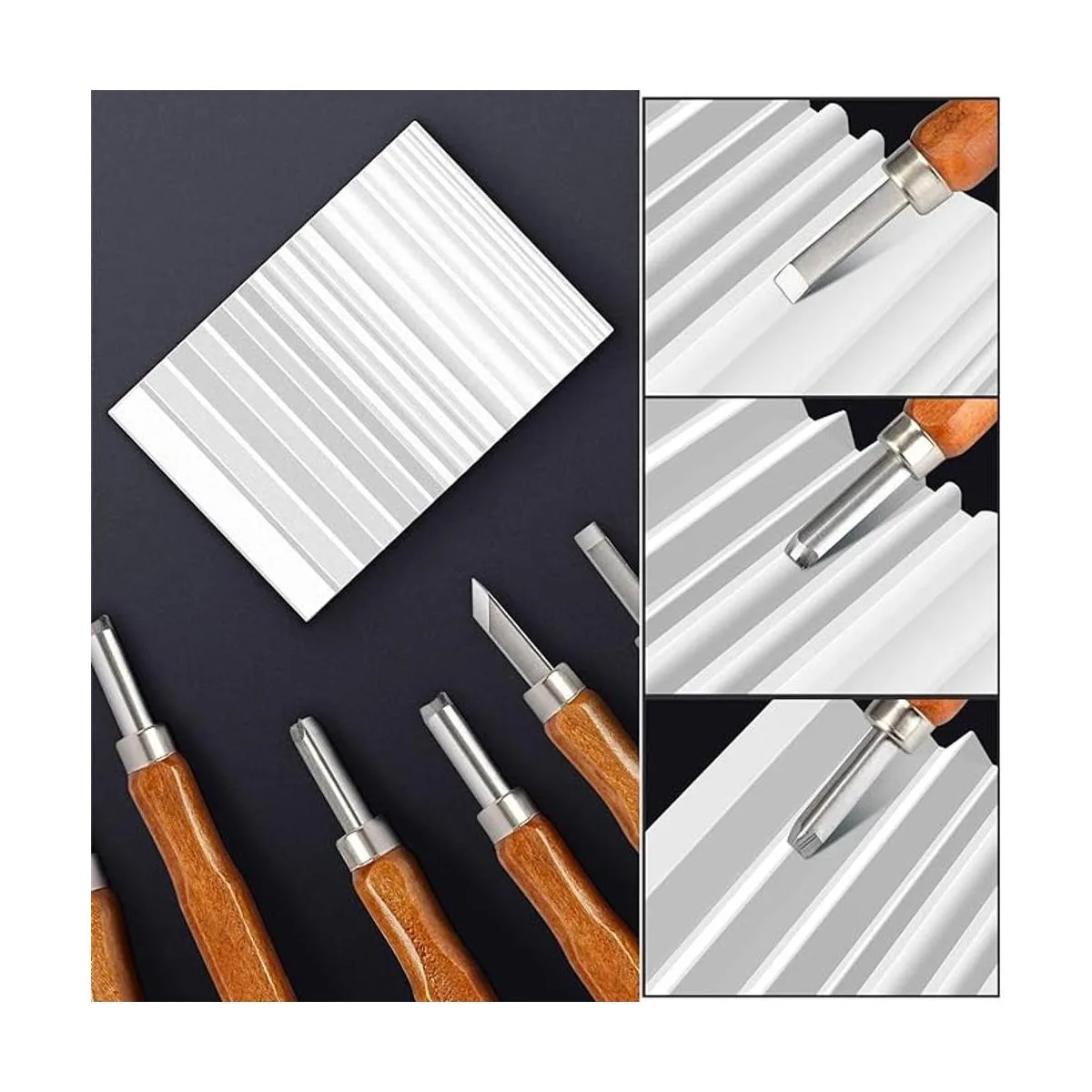 Más largas y más ranuras: nuestras herramientas de tallado son más largas que otras. La piedra de afilar con más ranuras funciona bien para múltiples herramientas, como herramientas de tallado de madera, carpintería, cinceles y gubias. No más dolor y molestias para afilar herramientas de carpintería contorneadas y cinceles en piedra de afilar plana.