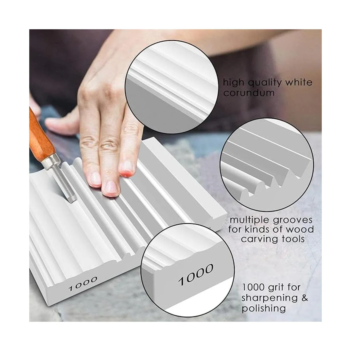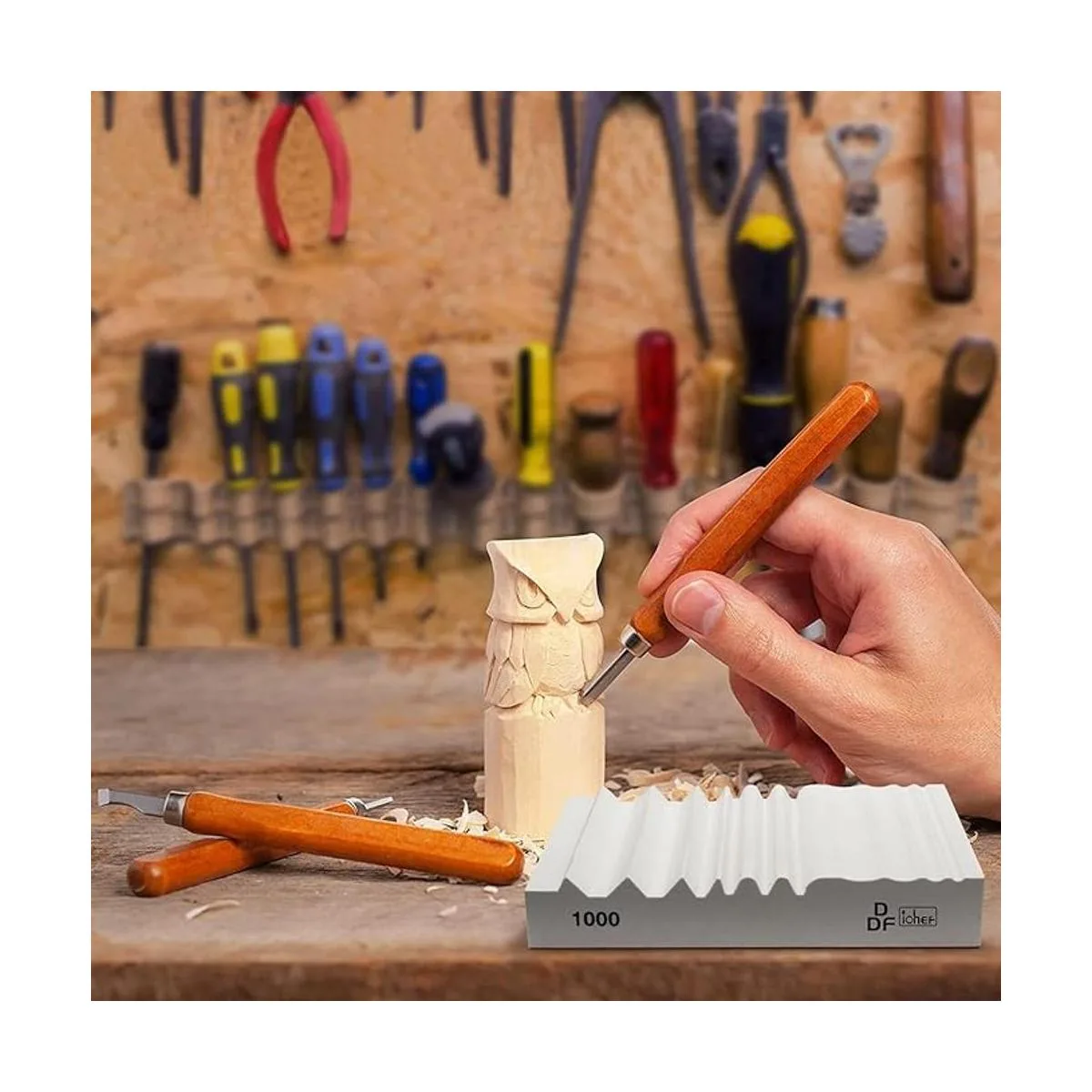 DDF iohEF Afilador de tallado de madera, piedra de afilar de grano 1000 con más ranuras, piedra de afilar para carpintería, herramientas de tallado de madera, cinceles y gubias
