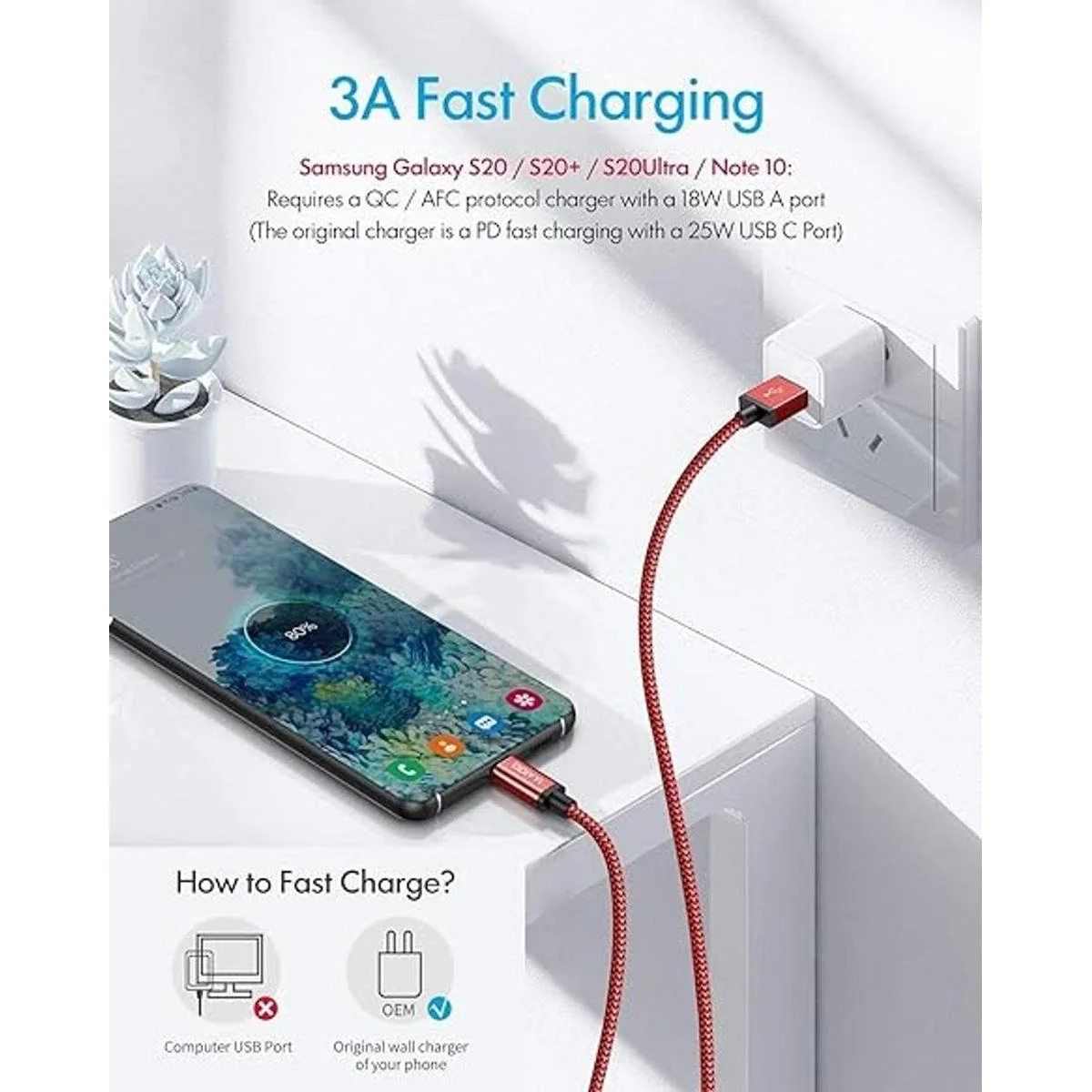 DDIYYI Cable USB tipo C largo de carga rápida 3 unidades de 10 pies, cable de carga USB A a USB C, cable trenzado para Samsung Galaxy S22, S21, S20, S10e, S10, S9, S8 Plus, Note 20, 10, 9, Ultra, A10e, A11, A12, A13, A03s, A32
