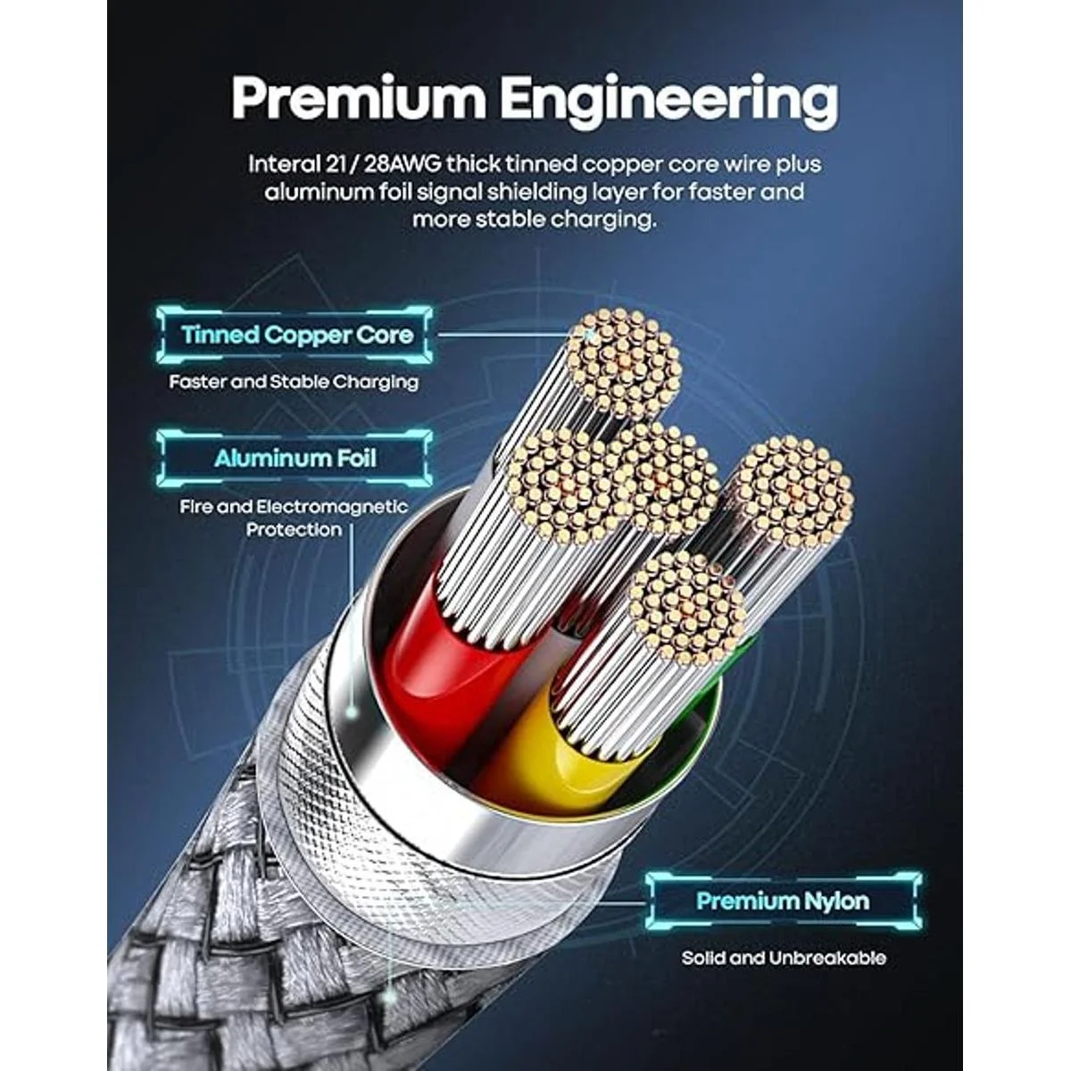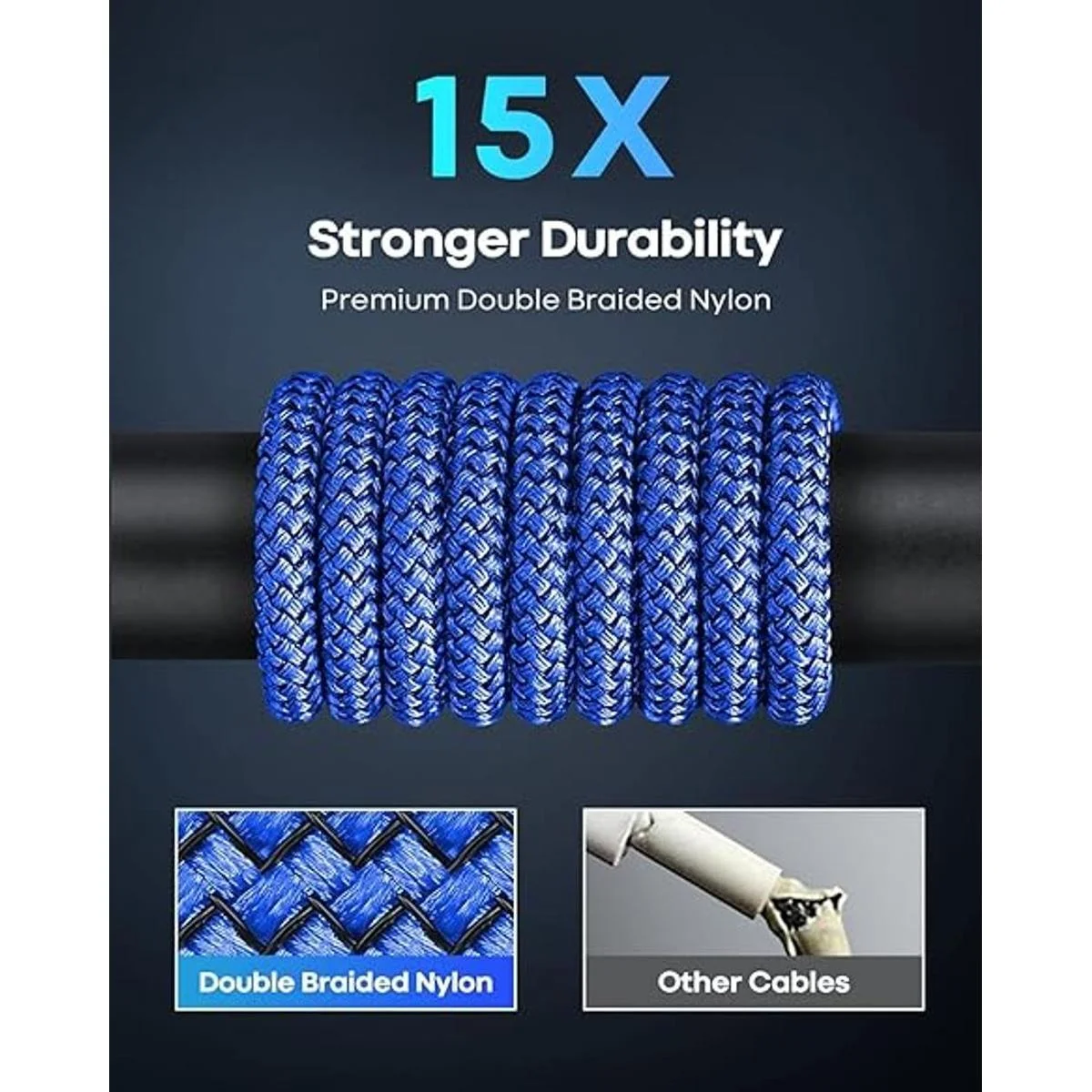 Duradero y resistente: nailon trenzado de alta calidad, durabilidad adicional y sin enredos, no te preocupes por doblarte o romperse las mascotas. Conector de aluminio 3D mejorado y tecnología exclusiva de soldadura láser que garantizan que la parte metálica no se rompa. Puede soportar más de 30.000 pruebas de flexión y enchufe.