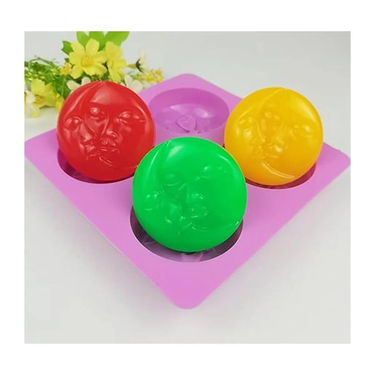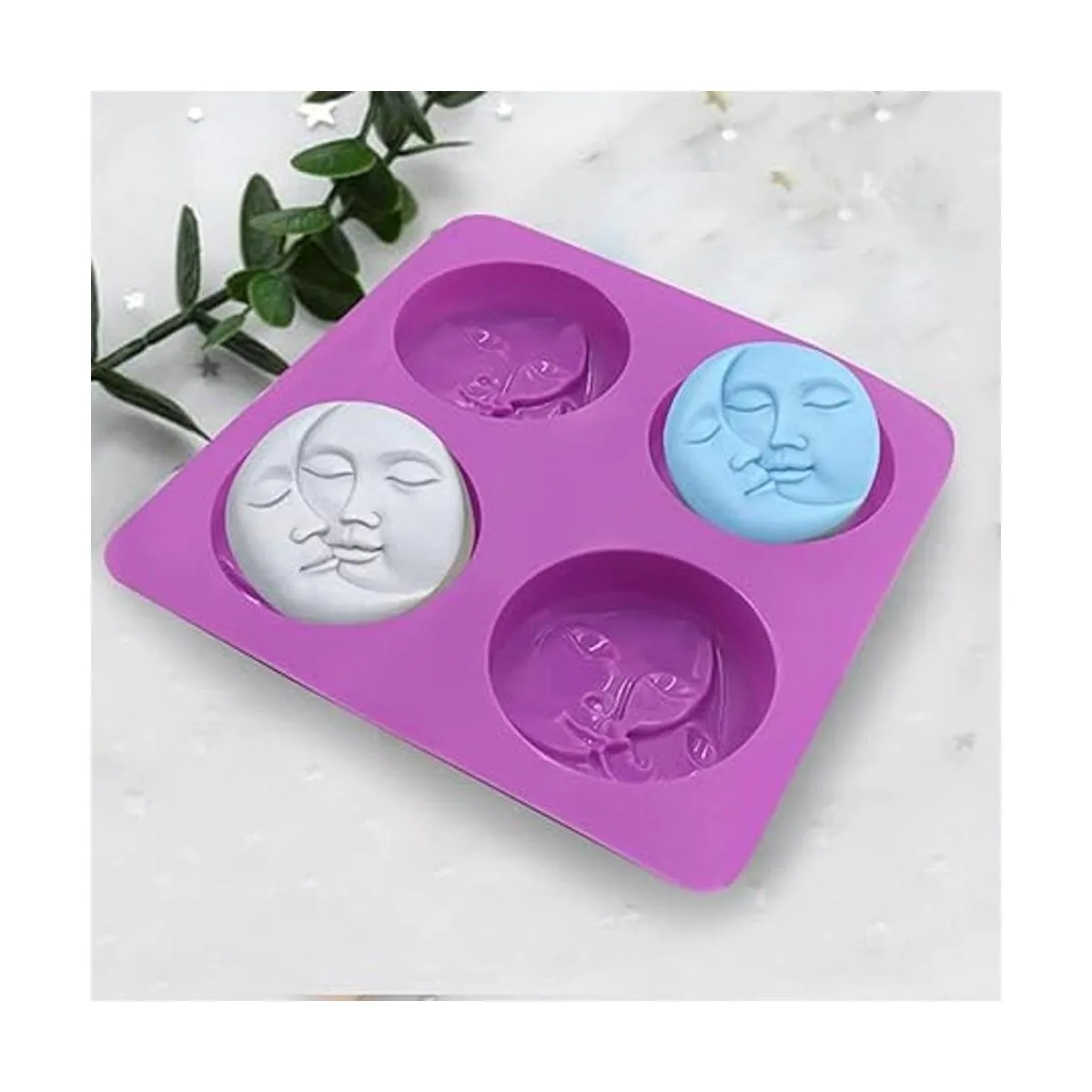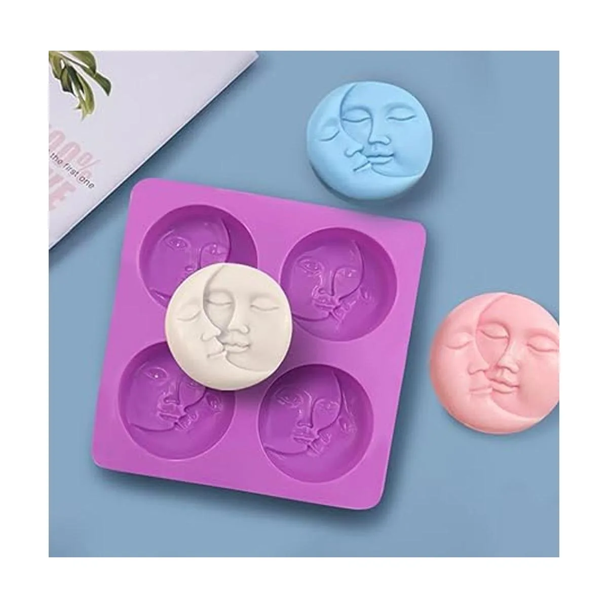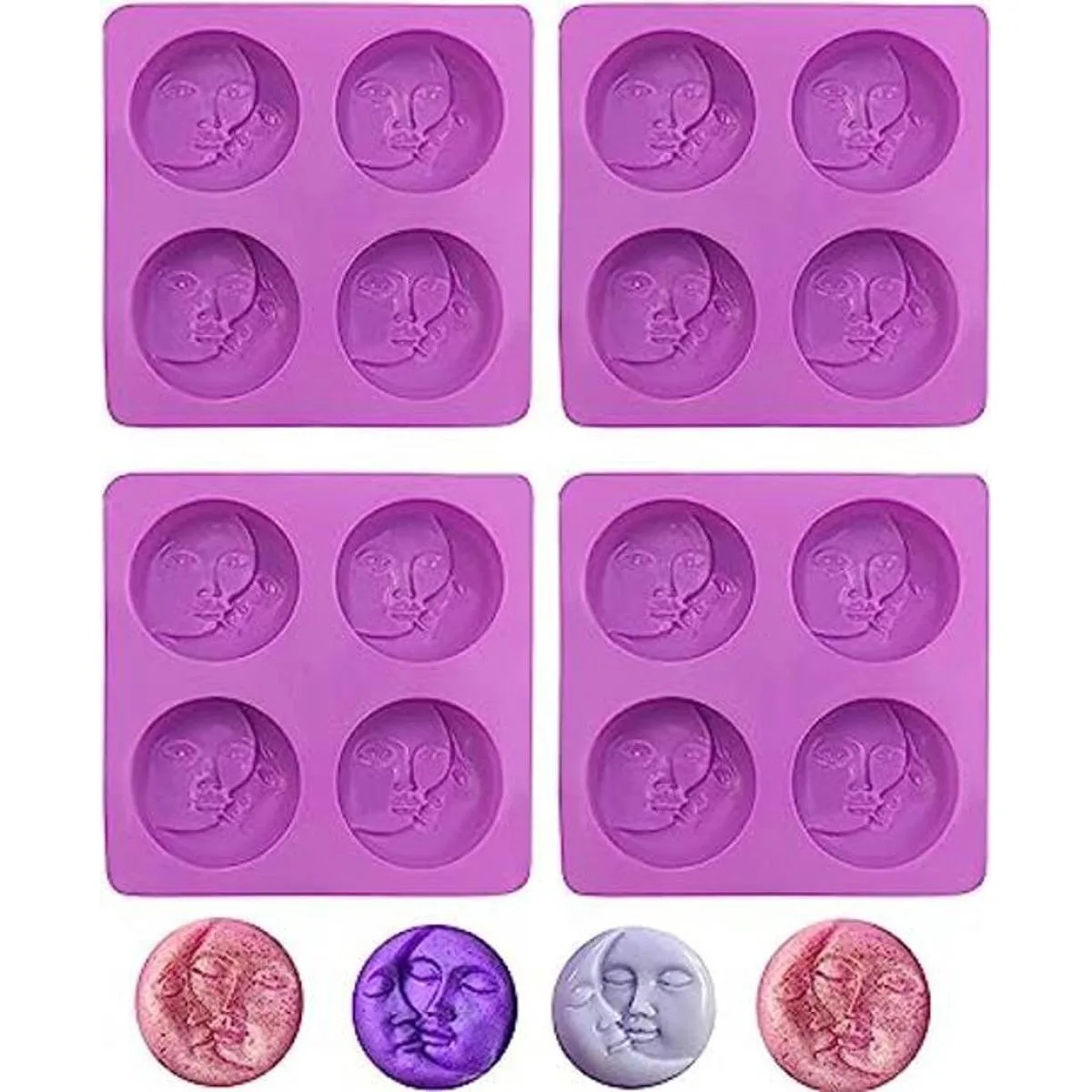 DDlife 4 moldes de jabón de silicona para cara de sol y luna de 4 cavidades, moldes de jabón de silicona para sol y luna, molde de jabón de silicona para hacer resina DIY morado