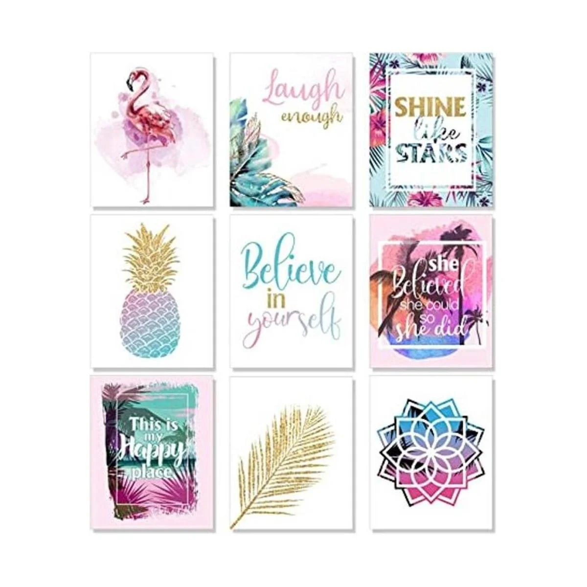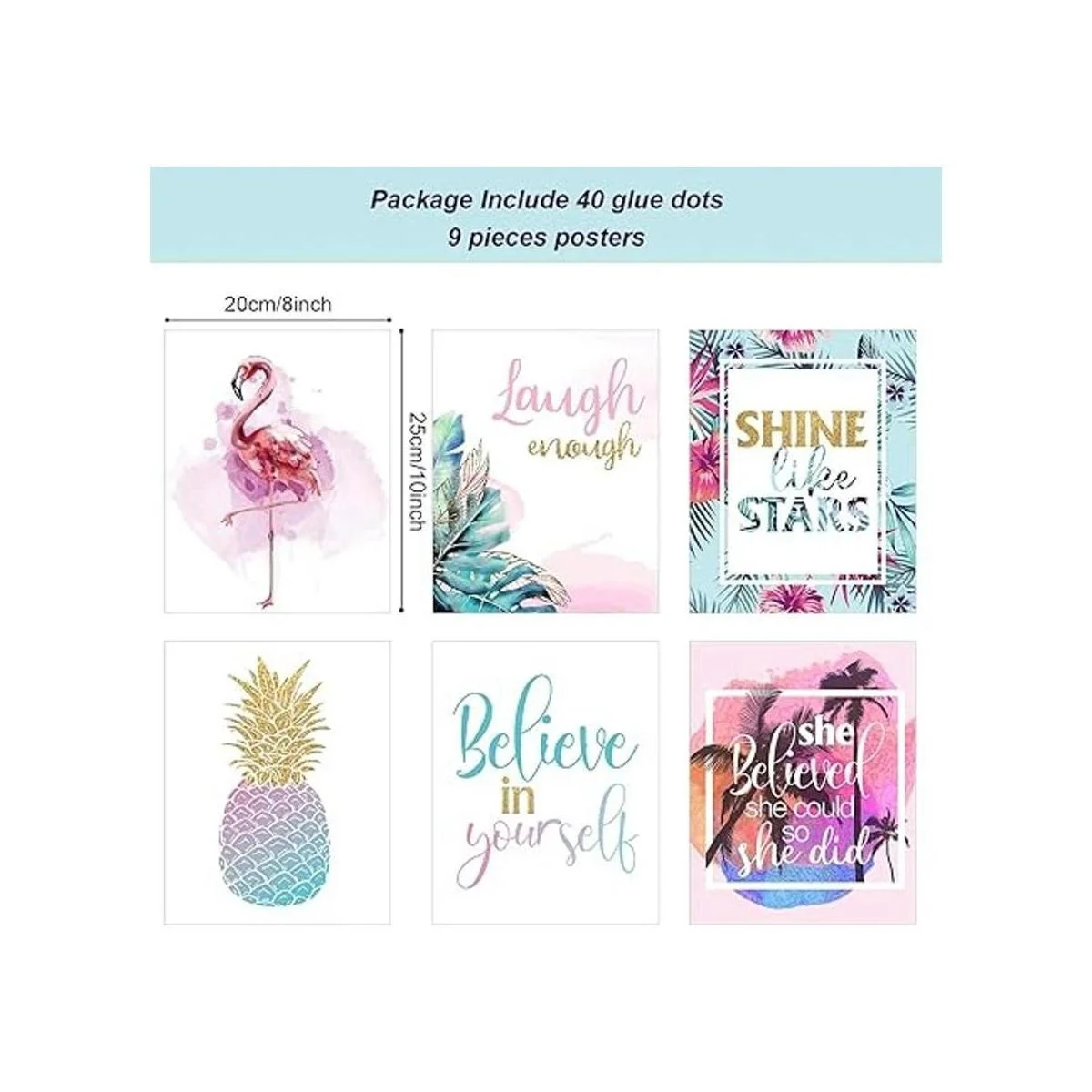 El paquete incluye: 9 impresiones artísticas para habitación de adolescentes con 40 puntos adhesivos; los pósteres de pared están hechos de cartulina resistente con superficie laminada para un uso duradero y duradero, y cada tarjeta mide aproximadamente 8 x 10 pulgadas WH