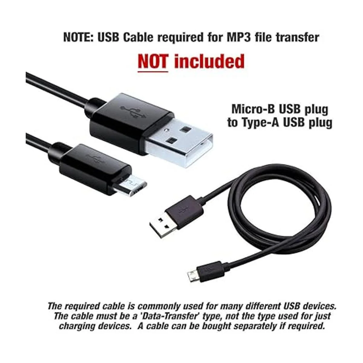 Descarga tus propios archivos MP3 a través de la toma USB. Añade efectos de voz, música o sonido