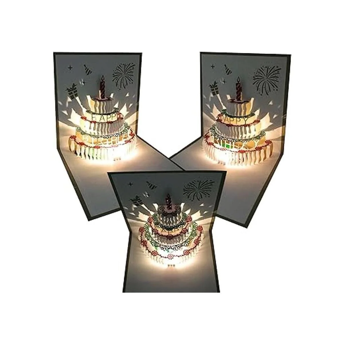 de cumpleaños 3D con luz LED cálida con corte láser los