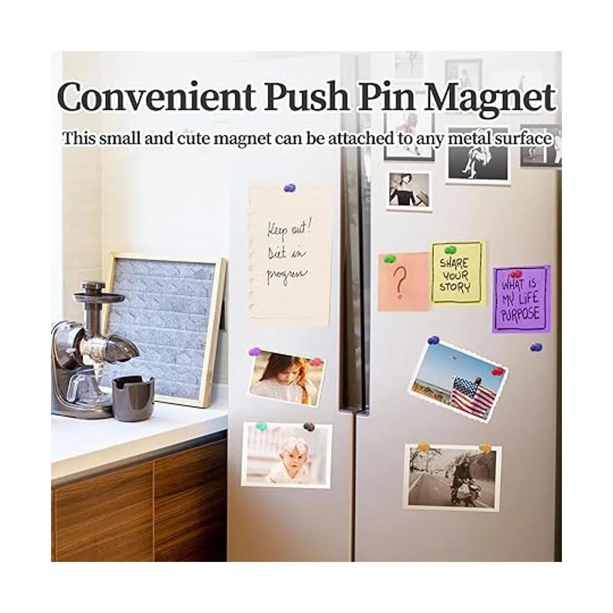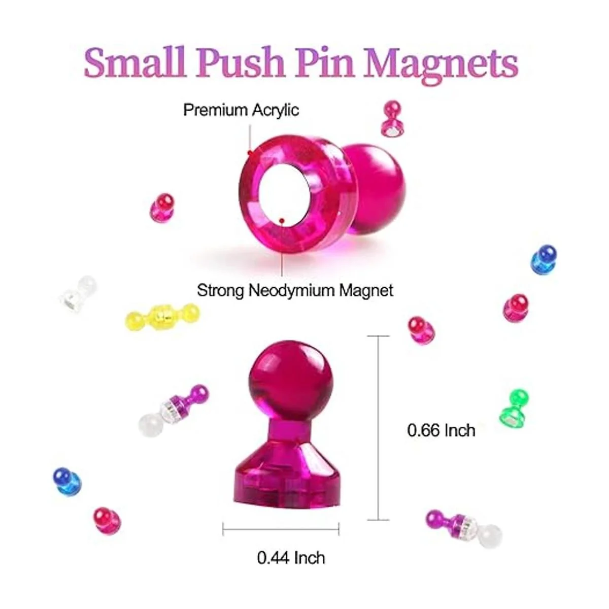 Pequeño pero fuerte magnético: cada imán de refrigerador mide 0.669 in de largo x 0.433 in de diámetro, muy pequeño, por lo que no cubre lo que quieres mostrar. Sin embargo, cada potente imán de pin tiene un fuerte magnetismo que puede contener fácilmente hasta 11 hojas de papel en cualquier superficie metálica.