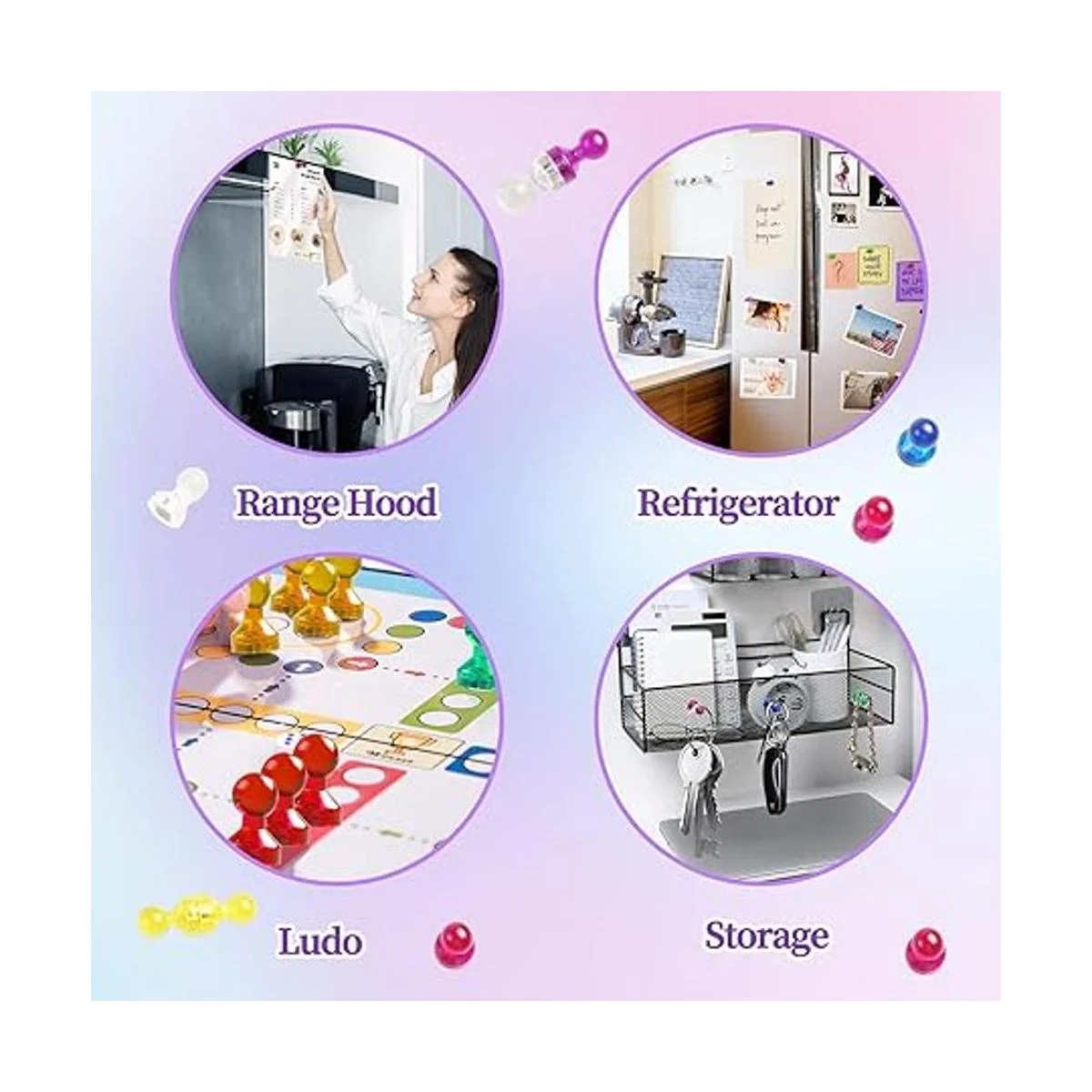 Amplio uso: estos coloridos imanes son perfectos para sostener papel de impresora, notas, fotos, postales y mapas en nevera, archivadores, taquillas, pizarras de borrado en seco y otras superficies metálicas. También es adecuado para pizarras blancas, calendarios magnéticos, mapas magnéticos y otras superficies magnéticas.