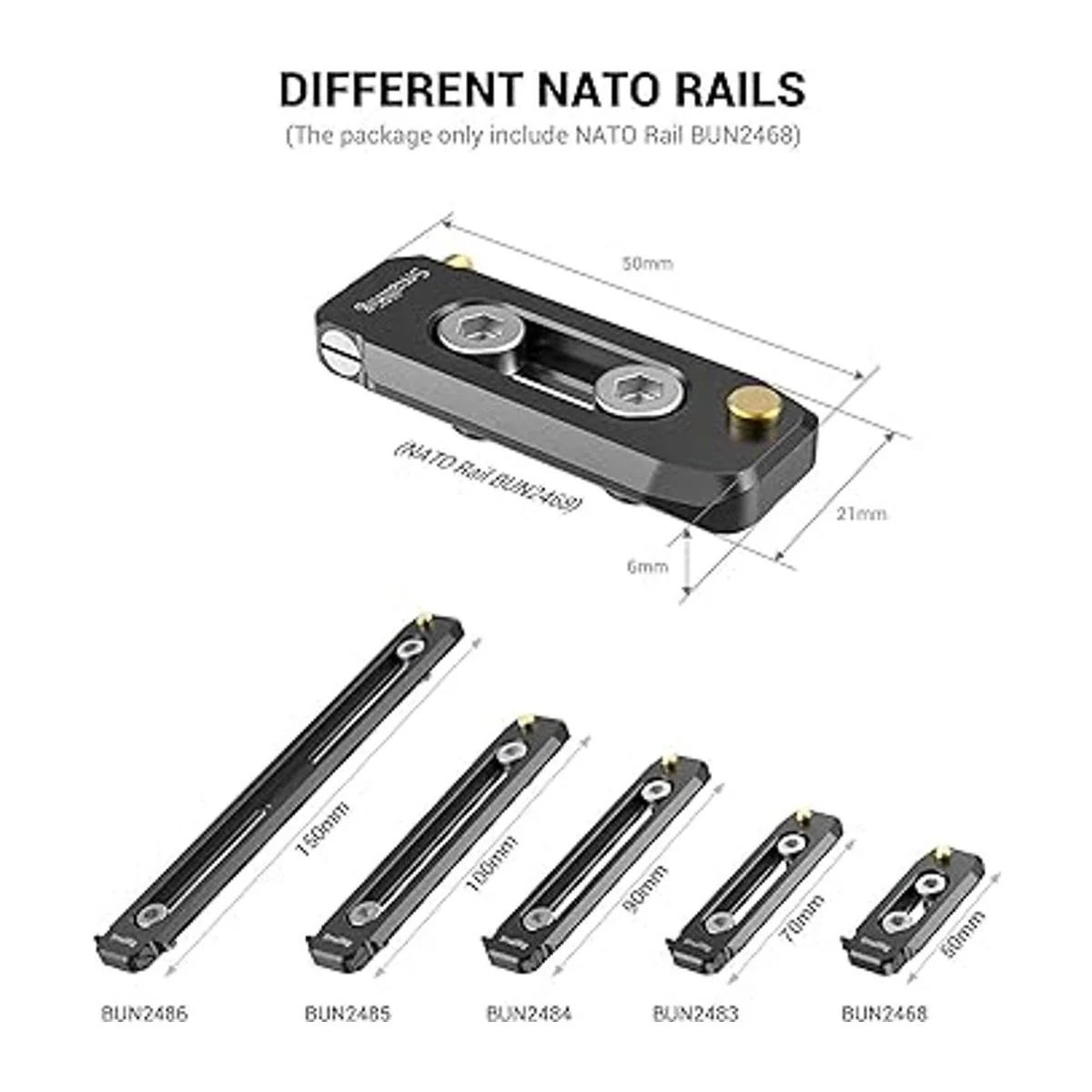 Estándar de riel NATO: Smallrig BUN2468 es compatible con accesorios estándar NATO para una liberación rápida, como abrazaderas, asas y soportes de monitor, lo que te permite fijar y liberar rápidamente los componentes del aparejo
