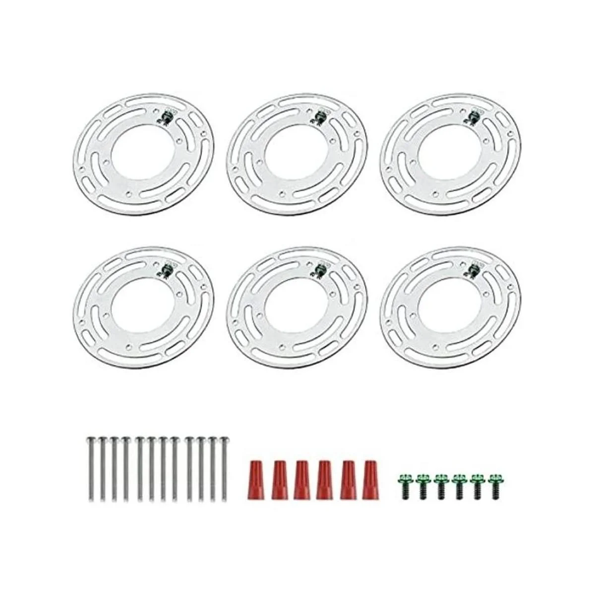 El paquete incluye: 6 placas de montaje para lámparas, 12 tornillos de montaje de barra transversal, 6 tornillos de tierra, 12 tuercas de cableado