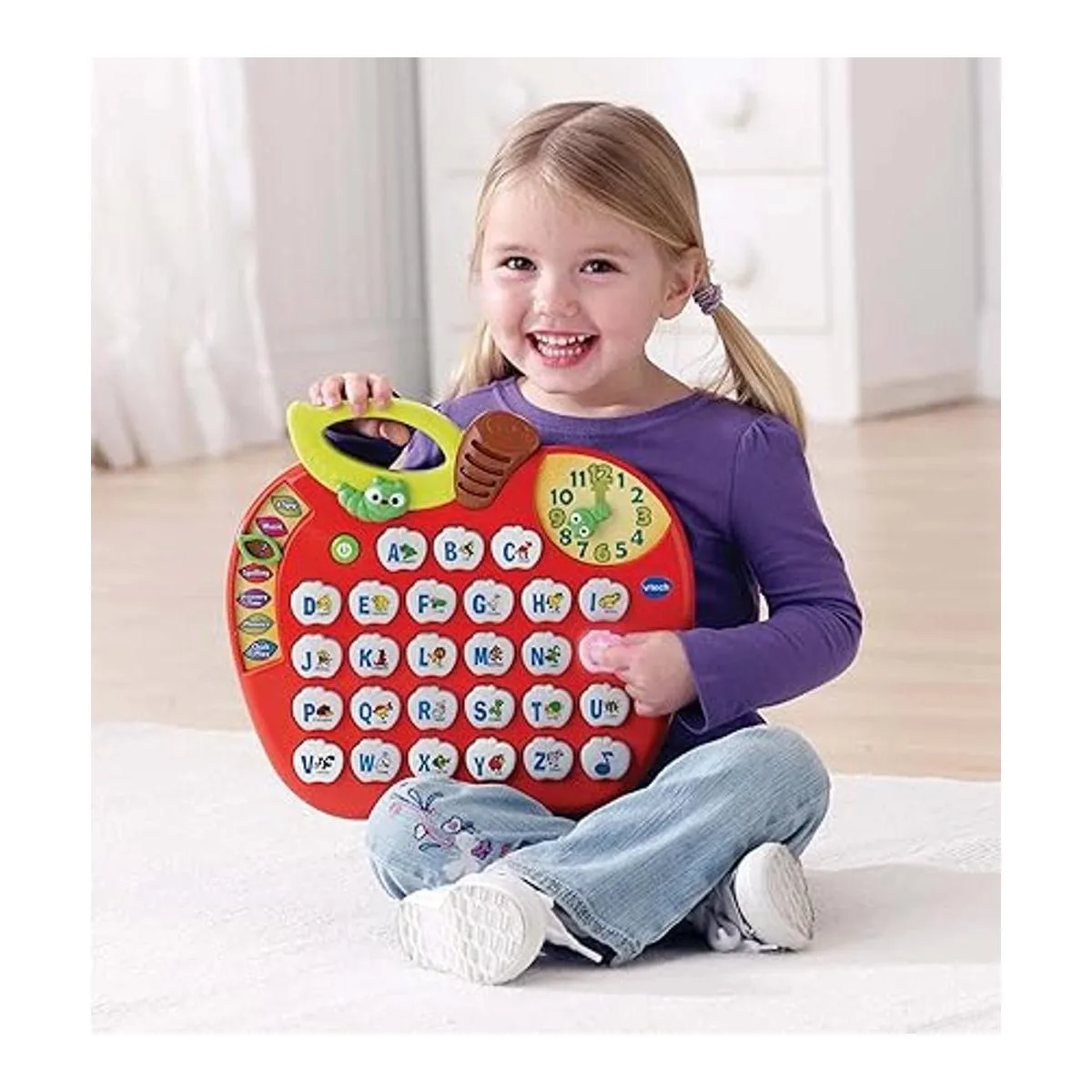 Alfabeto Worm actúa como la guía durante los juegos de juguete y el aprendizaje; El reloj tiene una mano móvil que introduce los conceptos de tiempo