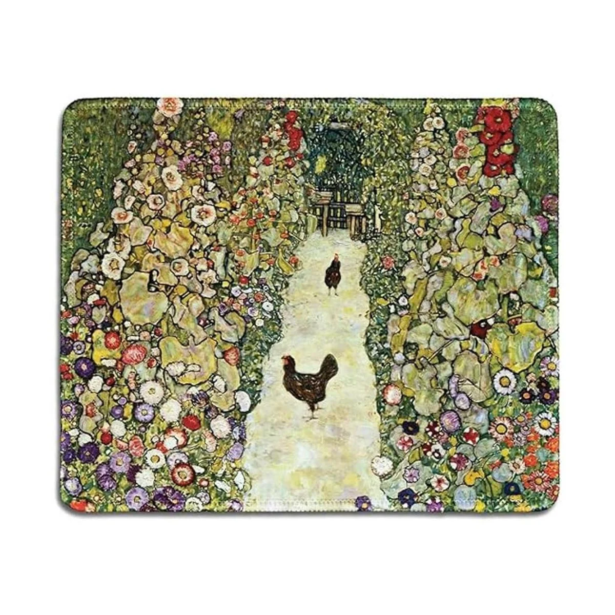 dealzEpic Art Mousepad Alfombrilla de ratón de goma natural con famoso arte pintura de jardín con gallos pollos por Gustav Klimt bordes cosidos 9.5 x 7.9 pulgadas