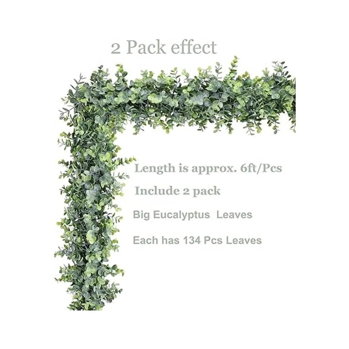 Tamaño: cada guirnalda de hojas de eucalipto artificial es aprox. 6 pies de longitud /cada uno. Material: plástico. Color: Verde, polvo ligero. Especialmente adecuado para exteriores, bajo el sol, ventana, arco de boda, fondo de boda, mesa.