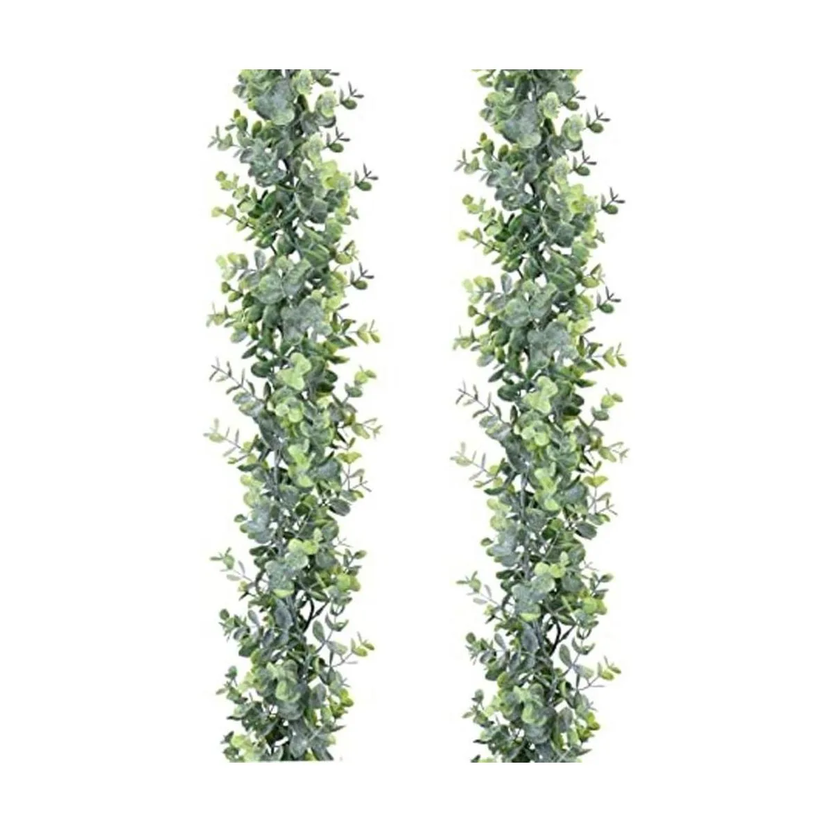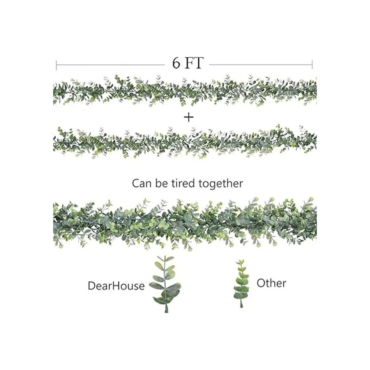 DearHouse Guirnalda de eucalipto sintética, paquete de 2 vides artificiales colgantes de hojas de eucalipto para decoración de pared, arco de fondo, 6 piespiezas con protección UV para interiores y exteriores