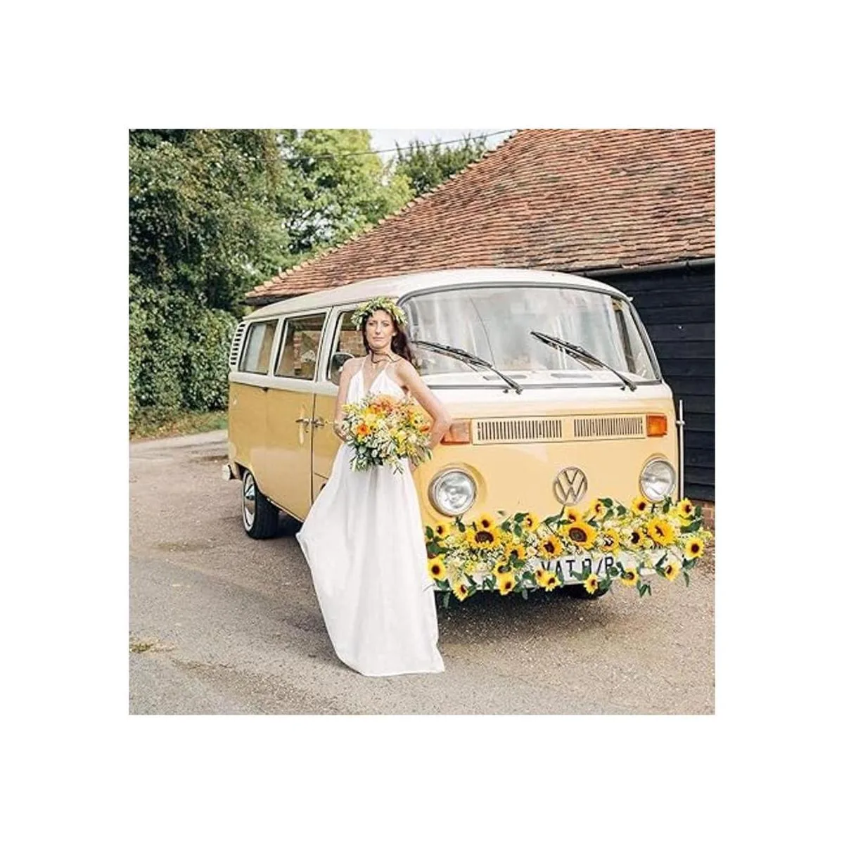 Paquete y atención de compra: hay 3 guirnaldas de girasol artificiales en un solo pedido, elige la cantidad de pedido para satisfacer tus necesidades. Si quieres lograr un efecto más completo como se muestra en la imagen, te recomendamos que compres varios pedidos.